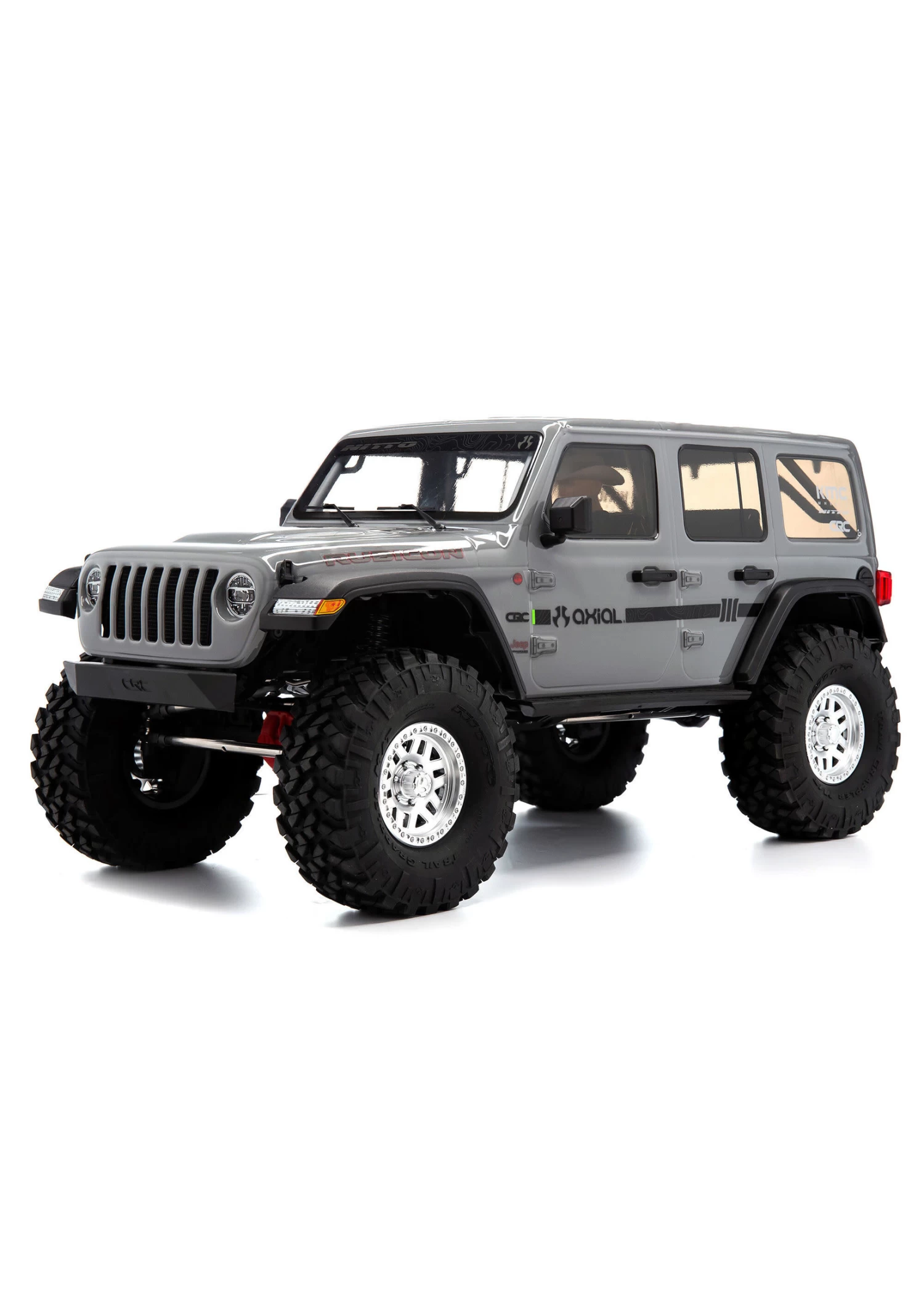 The chassis is topped off with a Jeep® Wrangler Unlimited four-door body that includes a roll cage, front hood vents and cowl, windshield wipers, mirrors, door handles and other molded-in details, plus a detailed interior and LED lighting. New taller and wider, officially licensed Nitto Trail Grappler tires on 3-piece beadlock wheels add more scale realism and more grip on dirt, rocks, and all other off-road trails.