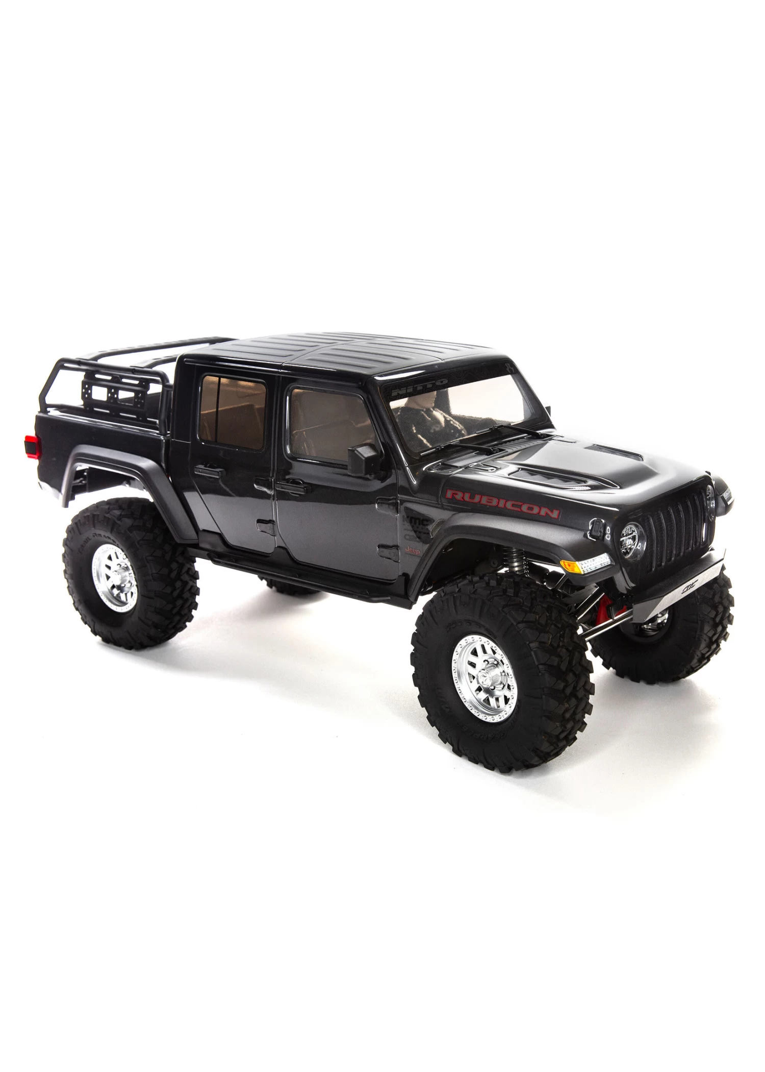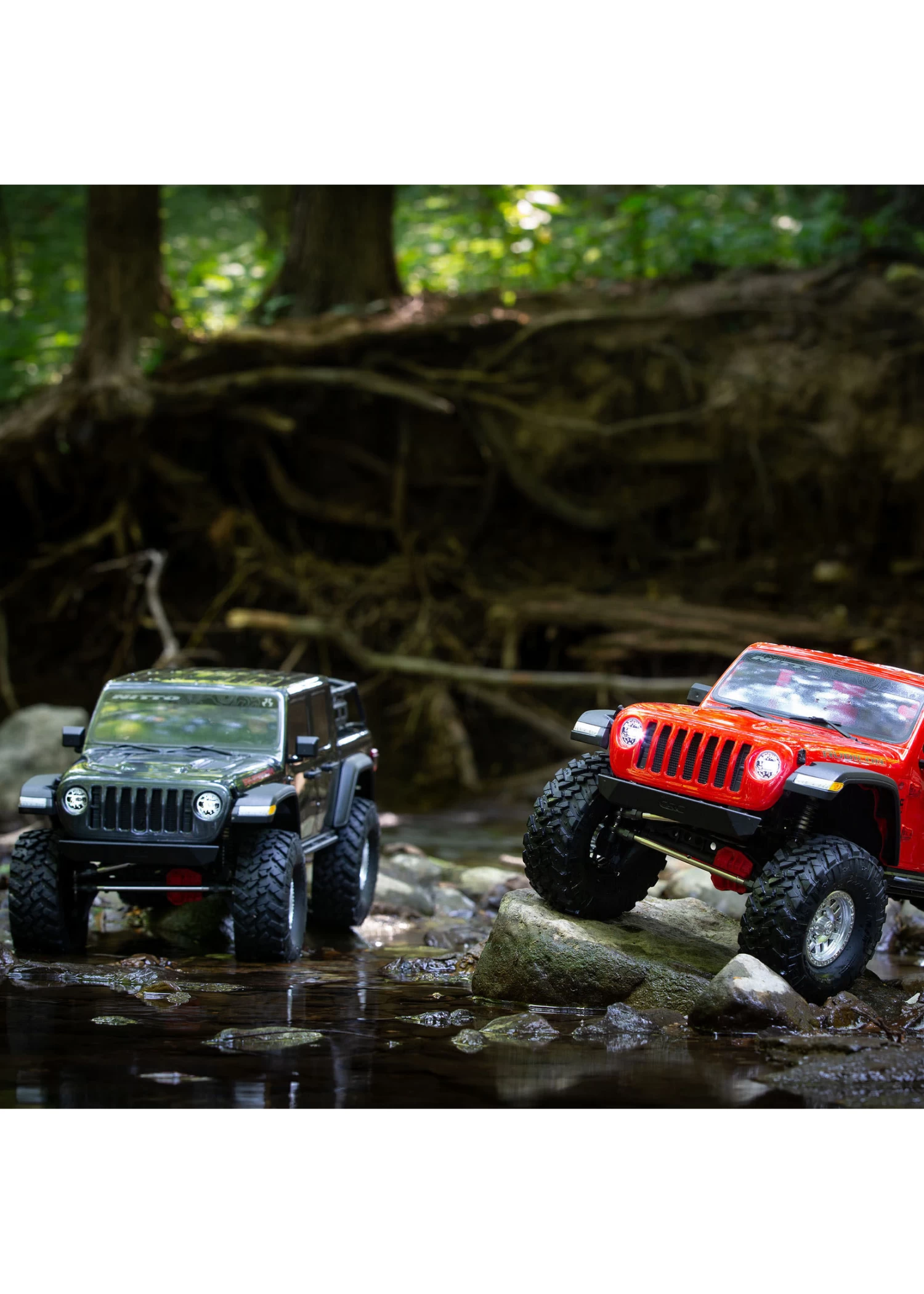Topping off the chassis is a scale Jeep® JT Gladiator body that mirrors its full-size counterpart with many highly authentic details. The body has over 20 injection-molded parts including a bed rack, door handles, mirrors, hood vents and more — taking polycarbonate body realism to the next level. The body has been split into three pieces for a more realistic deep bed. Officially licensed Nitto Trail Grappler tires on 3-piece beadlock wheels add more scale realism and more grip on dirt, rocks, and all other off-road trails.