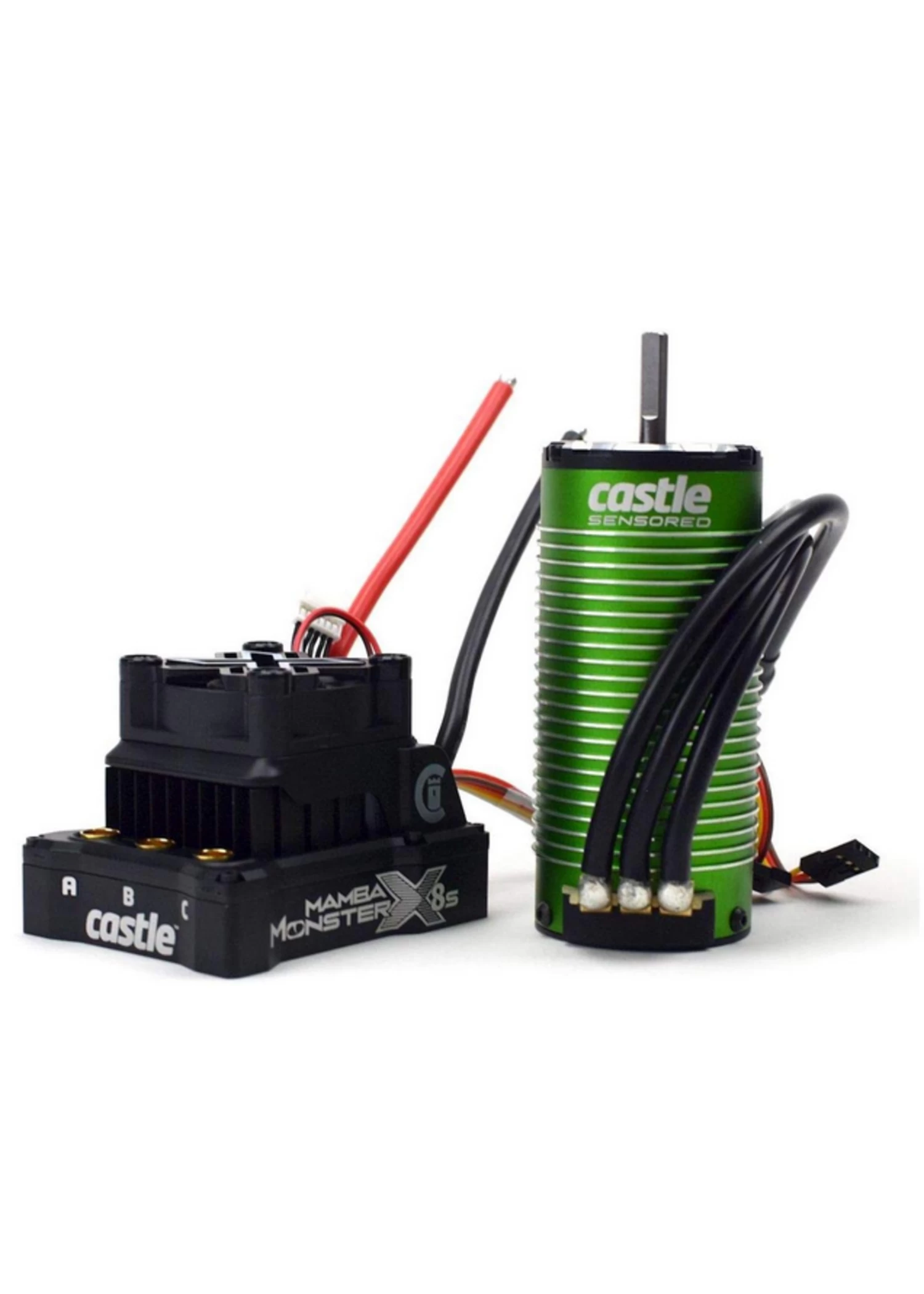 The MAMBA MONSTER X 8S utilizes Castle’s breakthrough technology, CRYO-DRIVE. By reducing the rate at which the ESC heats up and removing heat more efficiently, your setup will be able to handle higher gear ratios, in heavier vehicles, with longer runs. These software advancements work in parallel with a unique open housing design to allow increased directional airflow to cool critical components. With the integration of a 40mm cooling fan and a forged elliptical fin heatsink, the design maximizes airflow throughout the system, taking thermal performance to a whole new level.