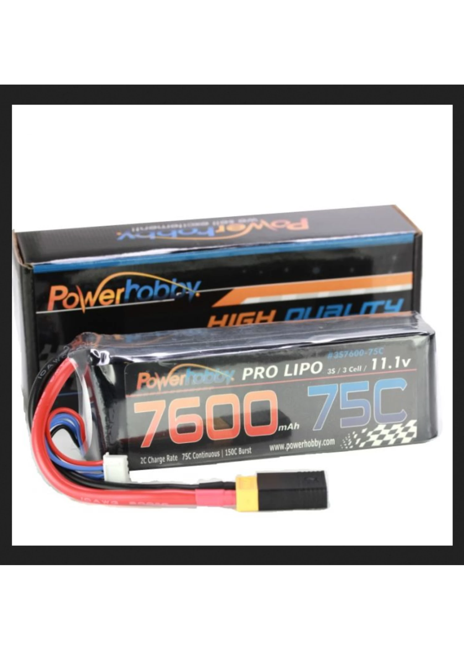 Powerhobby 3s 11.1v 7600mah 75c Lipo Battery w XT60 Plug + Traxxas Adapter