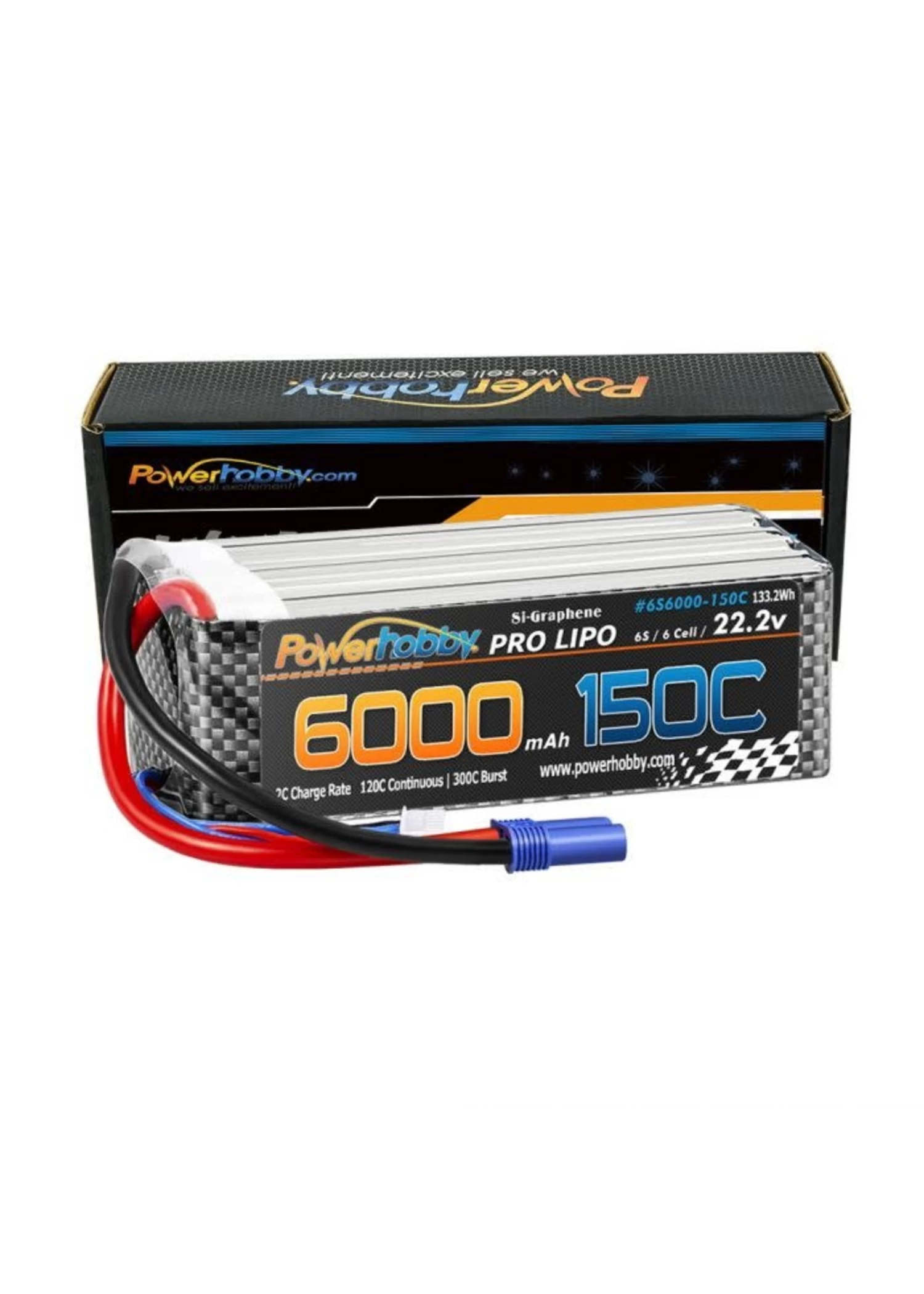 PHB6S6000150CEC5Power Hobby XTREME 6S 22.2V 6000mAh 150C/300C LiPo Battery With EC5 Plug120C Continuous / 300C Burst