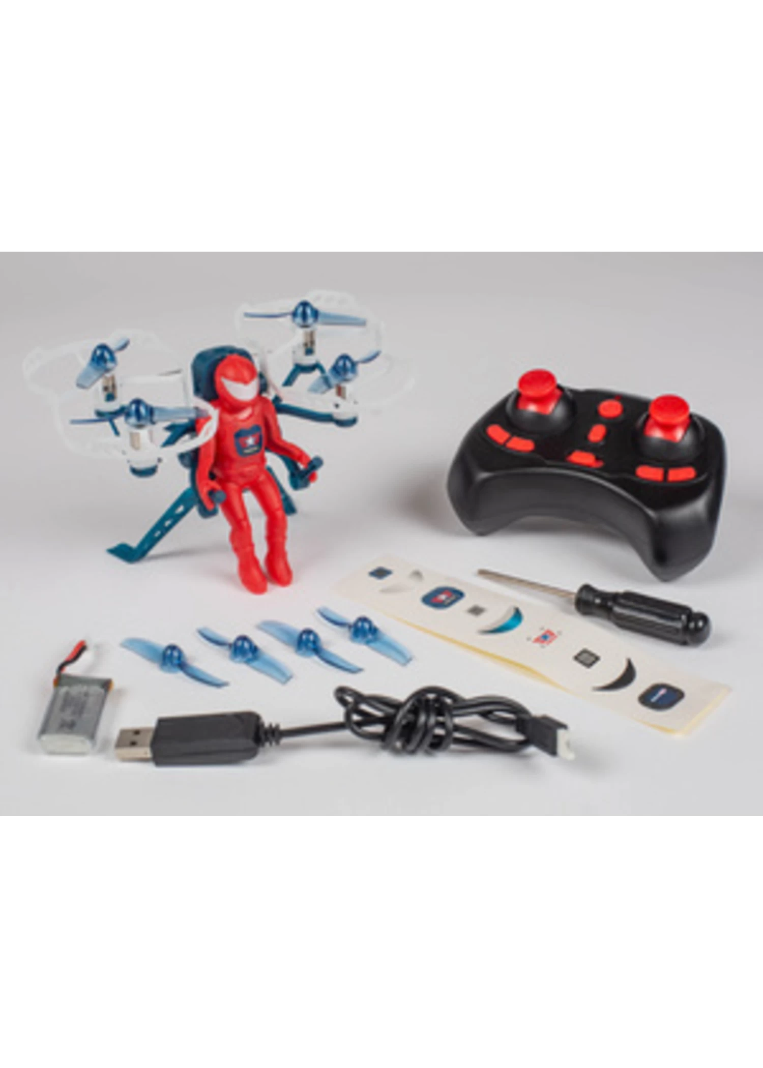 The Jetpack Commander XL is a RTF (Ready-To-Fly) aircraft, so it arrives factory-assembled with everything needed to experience the fun of RC flight – indoors, or outside even in light winds. In addition to the more realistic looking jetpack unit, the Jetpack Commander XL also includes a 2.4GHz 4-channel transmitter, a USB charger for the flight battery, and a decal set to create your own unique pilot. Just add 3 AAA batteries for the transmitter and you can be testing your flying skills around the house or back yard in no time.