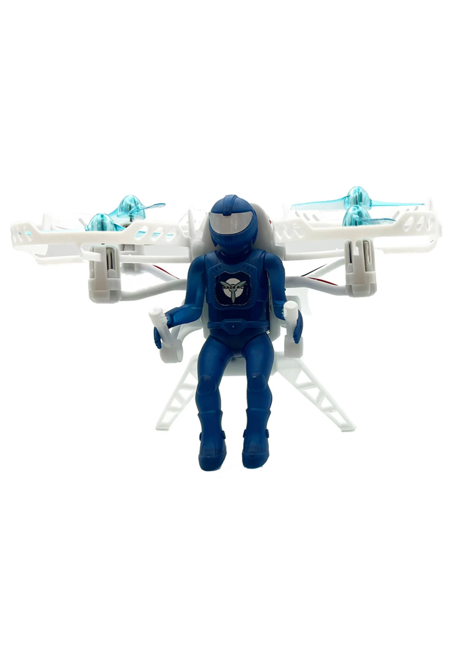 The Jetpack Commander XL is a RTF (Ready-To-Fly) aircraft, so it arrives factory-assembled with everything needed to experience the fun of RC flight – indoors, or outside even in light winds. In addition to the more realistic looking jetpack unit, the Jetpack Commander XL also includes a 2.4GHz 4-channel transmitter, a USB charger for the flight battery, and a decal set to create your own unique pilot. Just add 3 AAA batteries for the transmitter and you can be testing your flying skills around the house or back yard in no time.