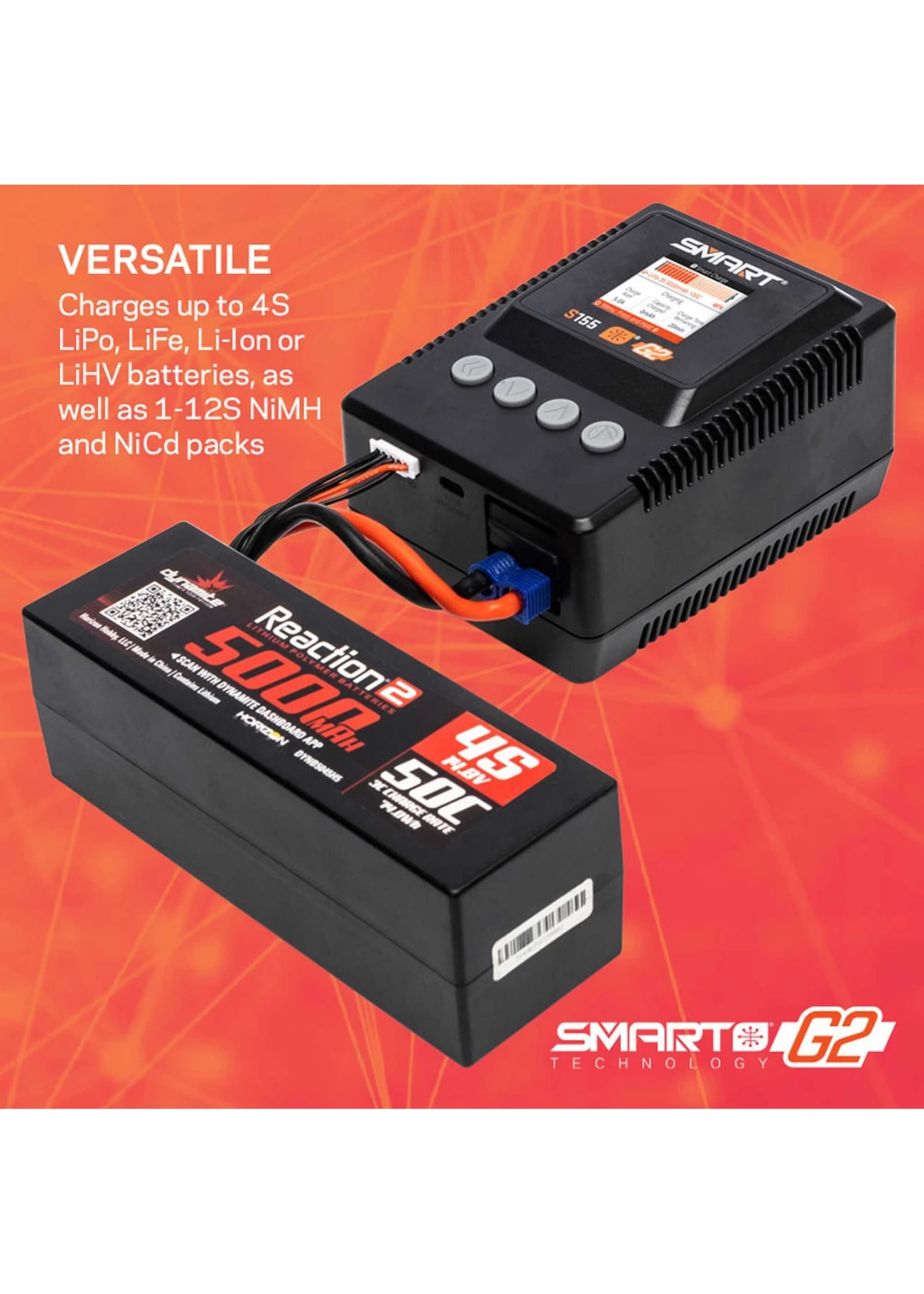 The Spektrum™ S155 charger makes advanced, user-friendly Smart G2 charging technology affordable for any RC hobbyist. It’s a particularly fine choice for cost-conscious new drivers and pilots who want the safe and simple operation that only a Smart charger can provide.
