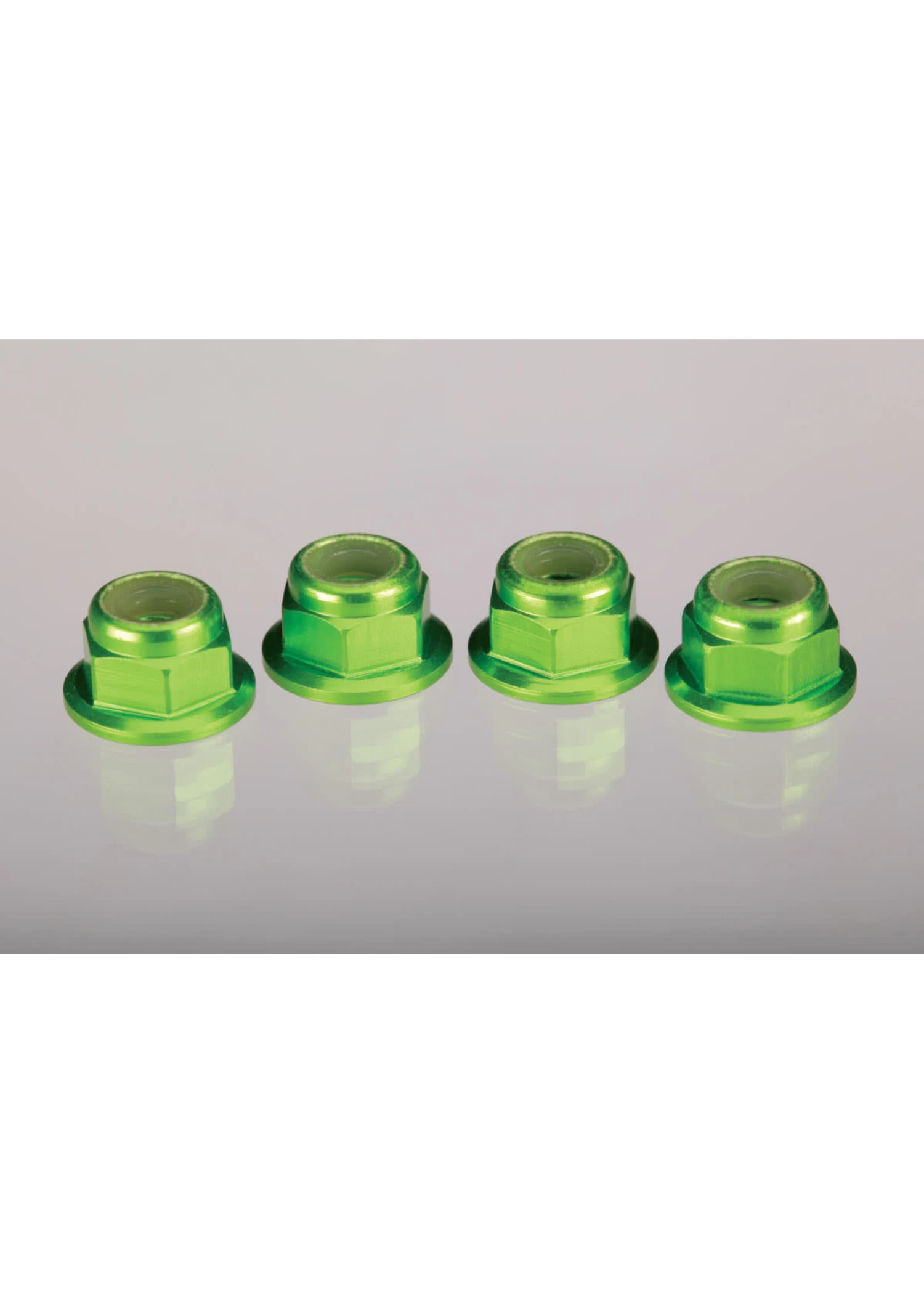 TRA1747G Traxxas Nuts, Aluminum, Flanged, Serrated (4mm) (green-anodized) (4)