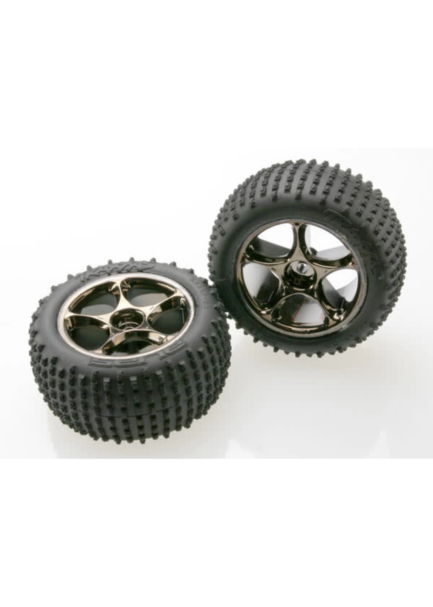 TRA2470A Traxxas Tires & Wheels, Assembled (Tracer 2.2′ Black Chrome Wheels, Alias 2.2′ Tires) (2) (Bandit Rear, Medium Compound With Foam Inserts) (TSM Rated)