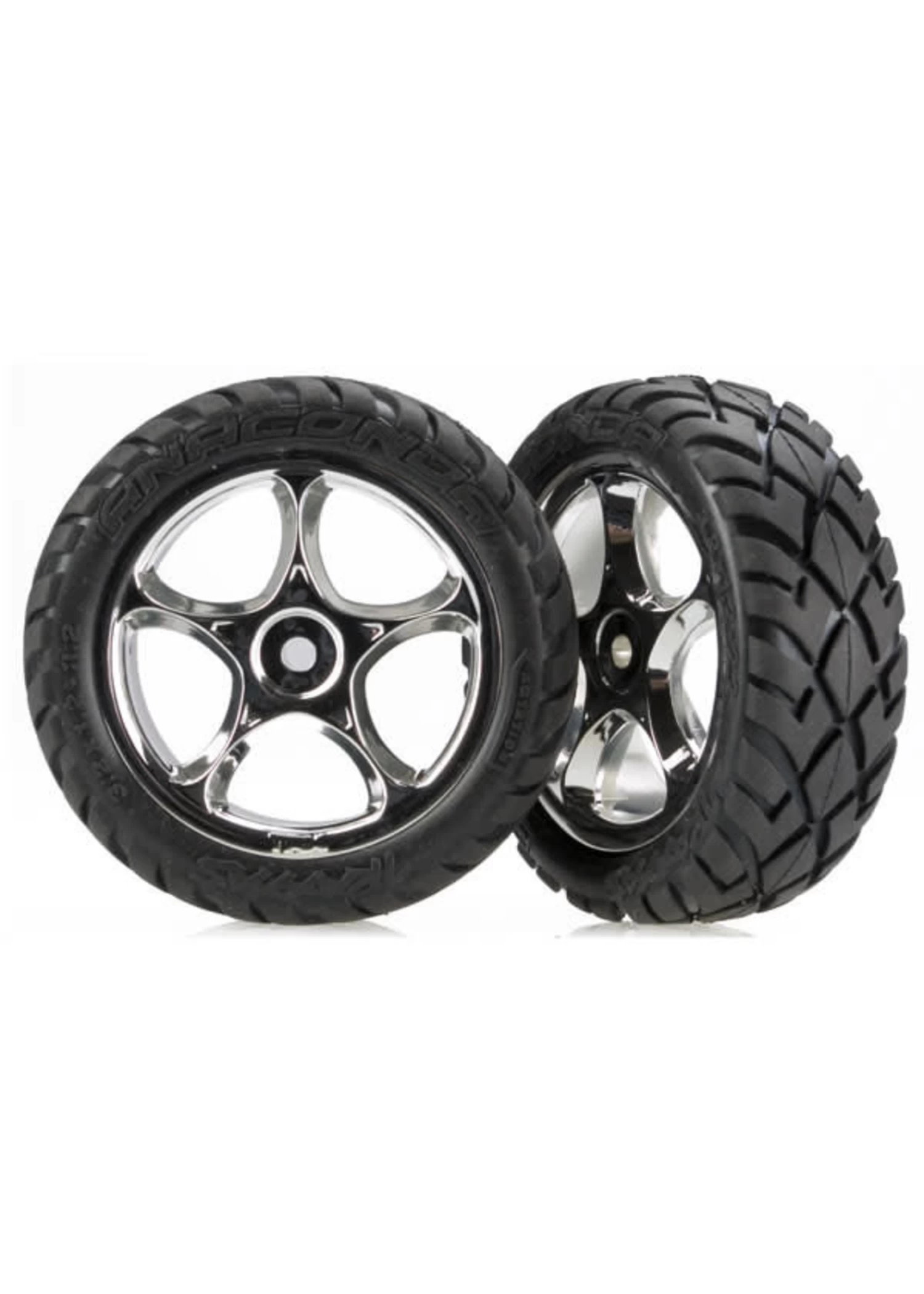 TRA2479R Traxxas Tires & Wheels, Assembled (Tracer 2.2′ Chrome Wheels, Anaconda 2.2′ Tires With Foam Inserts) (2) (Bandit Front)