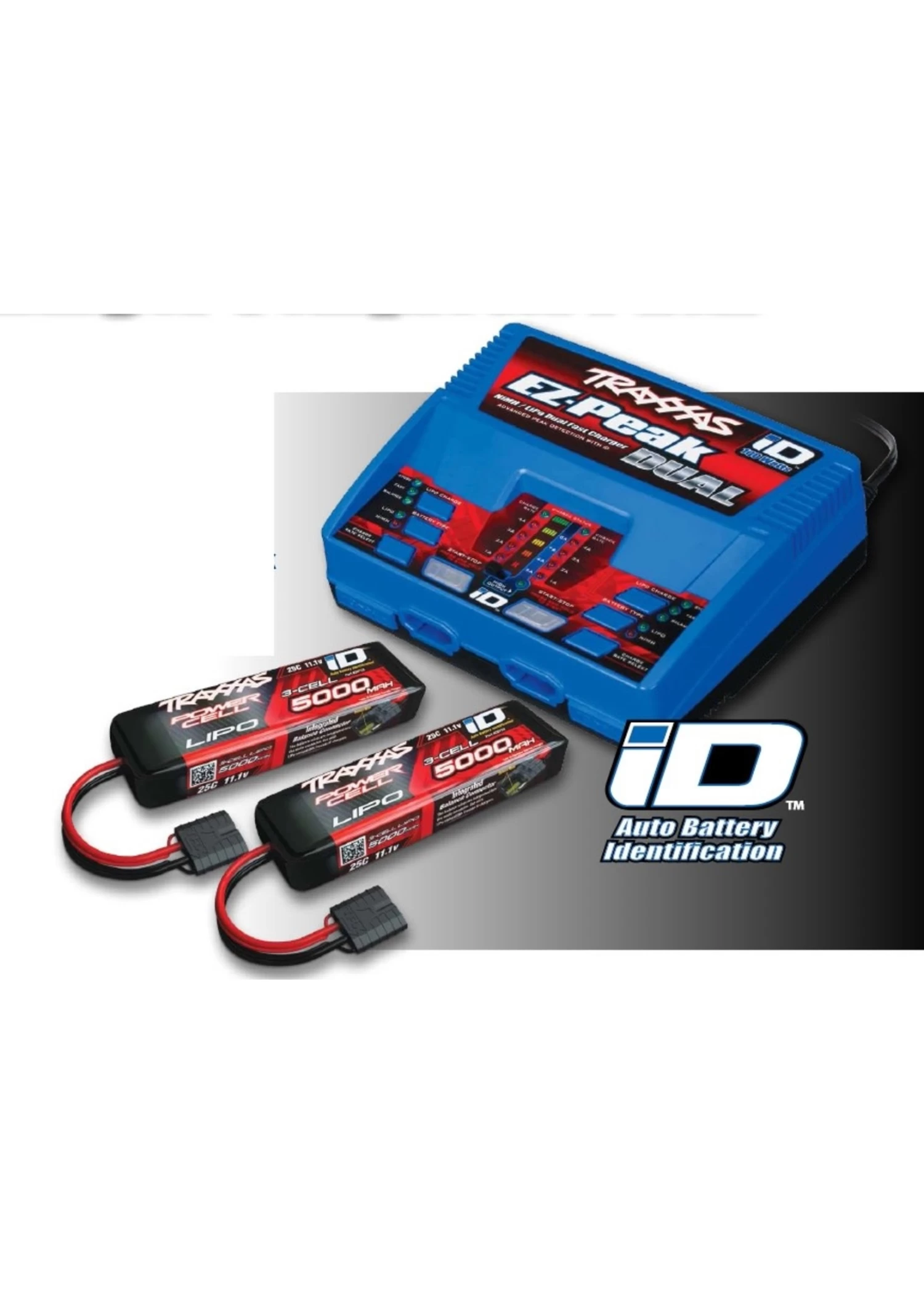 This charging system uses the Traxxas iD Battery Identification and is a great solution if you need batteries and a charger for a Traxxas vehicle requiring two 3S LiPo batteries; such as the X-MAXX Monster Truck and X0-1 Supercar. Even if your Traxxas vehicle requires only one battery, you can still take advantage of this system and have two batteries for use.