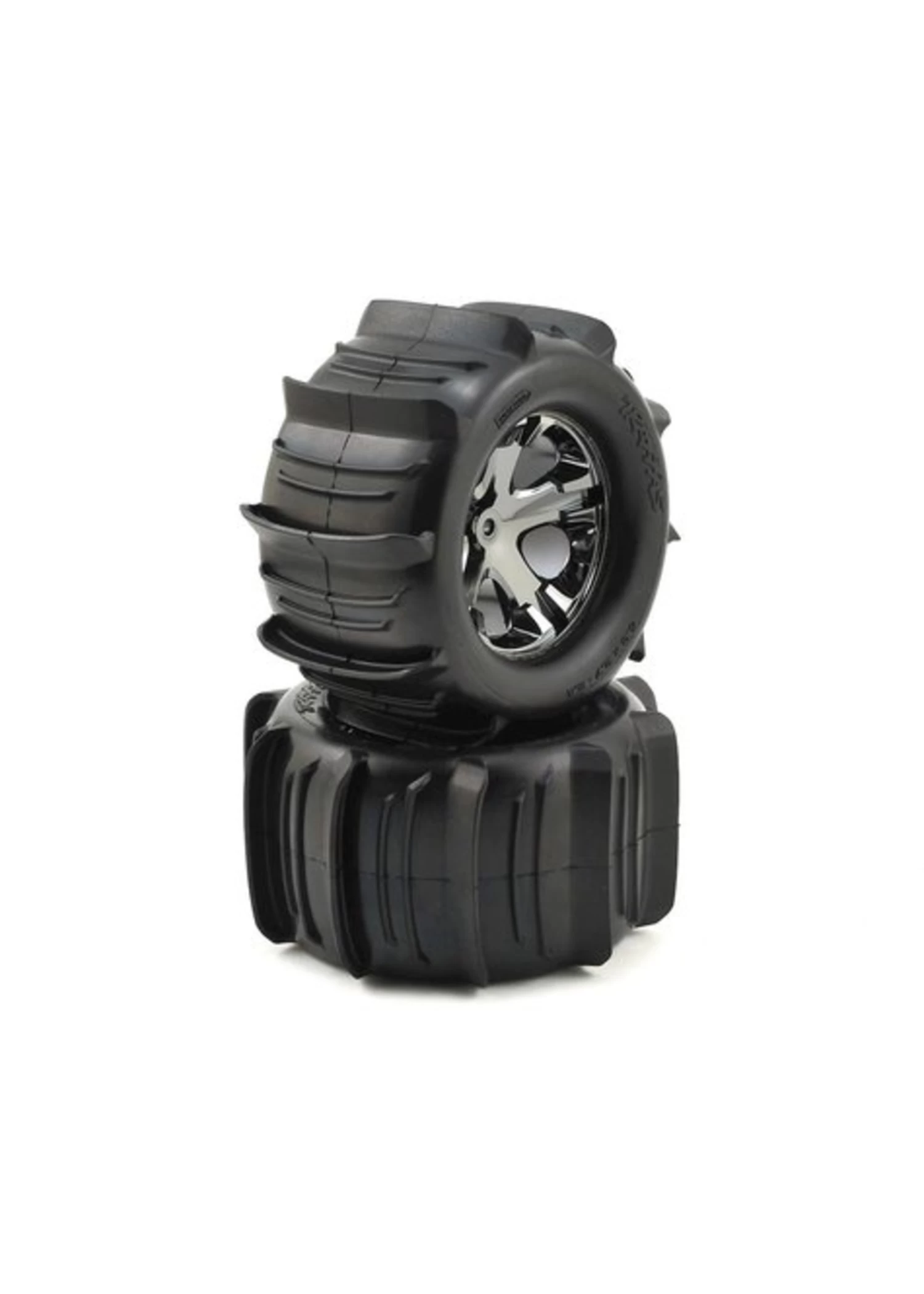 TRA3689 Traxxas Tires & Wheels, Assembled, Glued (2.8′) (All-Star Black Chrome Wheels, Paddle Tires, Foam Inserts) (2WD Electric Rear) (2) (TSM Rated)