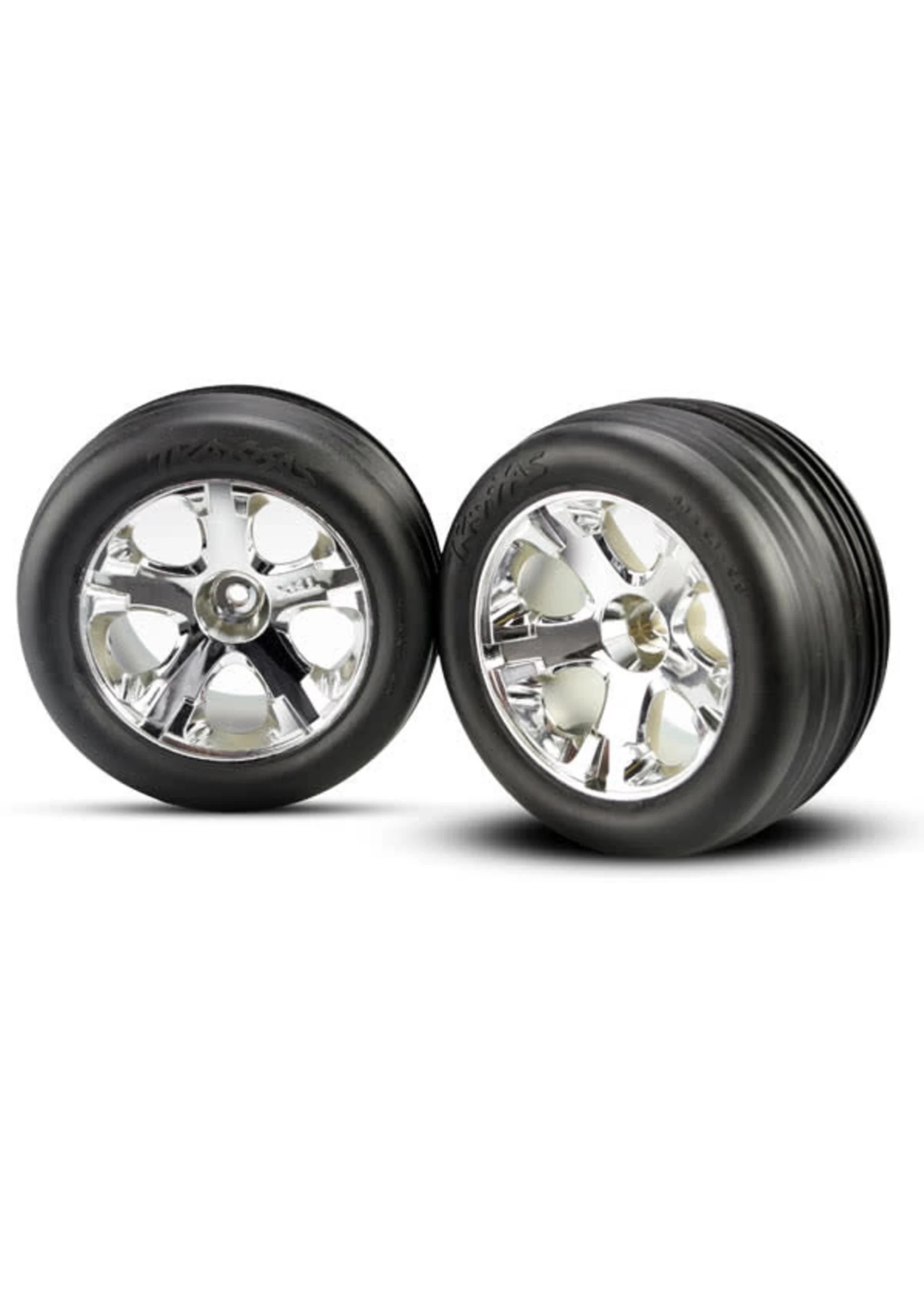 TRA3771 Traxxas Tires & Wheels, Assembled, Glued (2.8′) (All-Star Chrome Wheels, Ribbed Tires, Foam Inserts) (electric Front) (2)