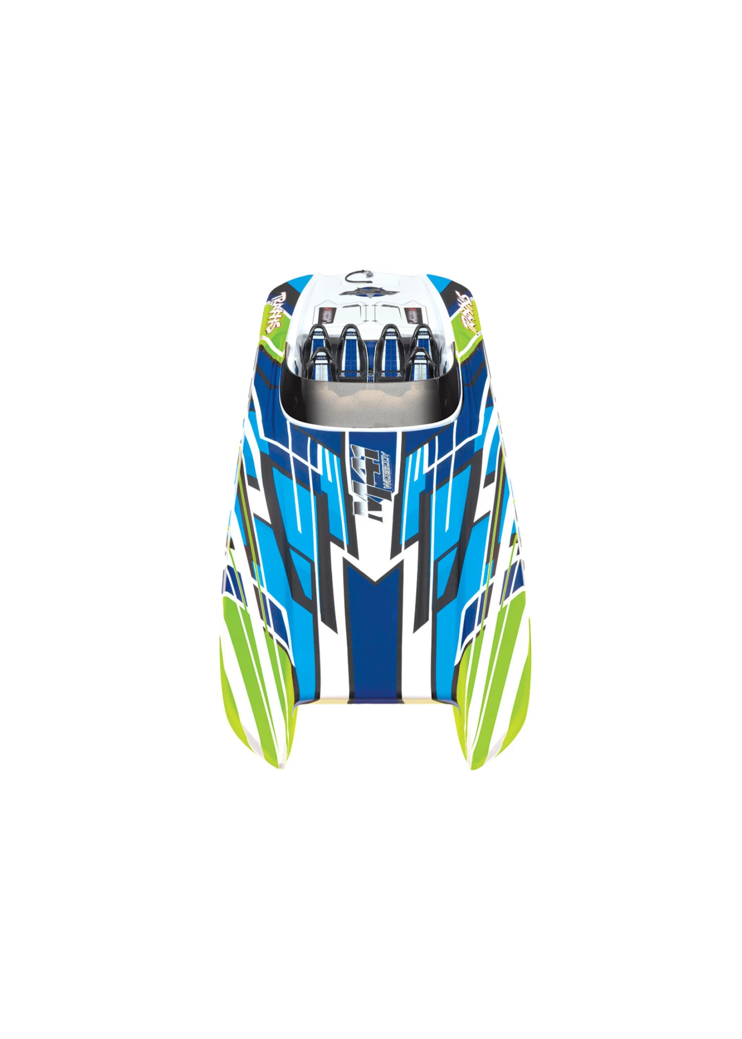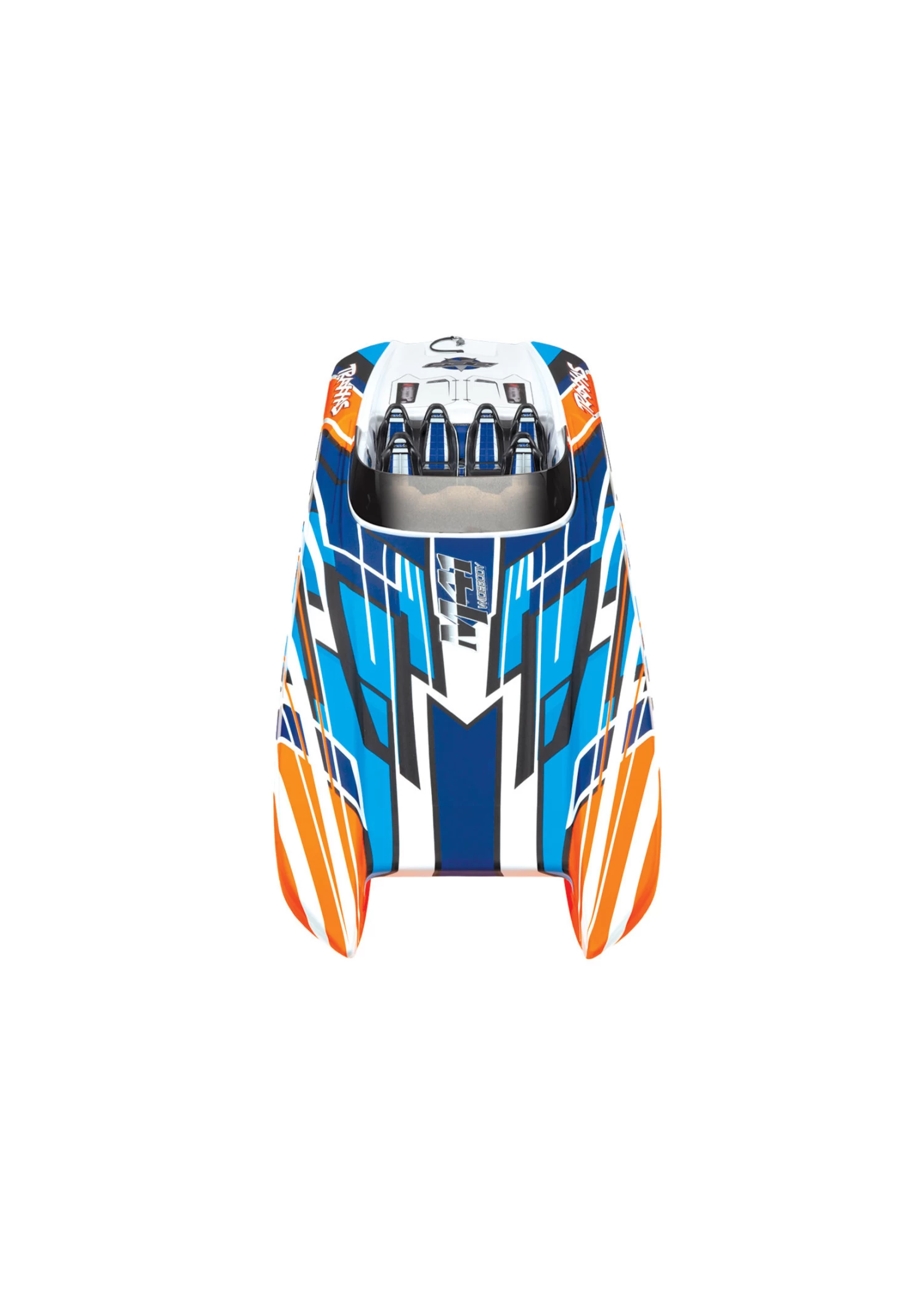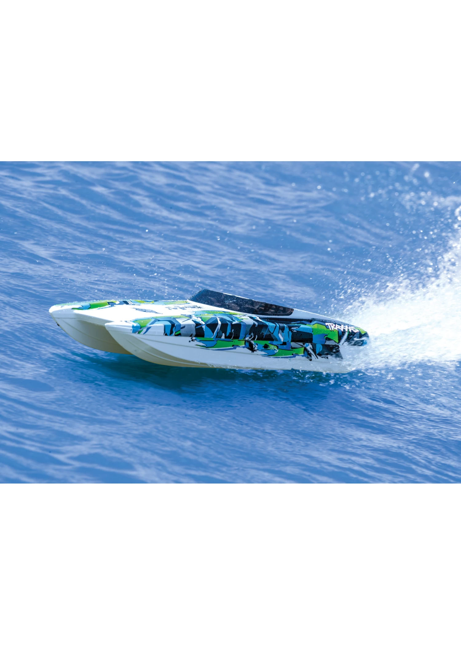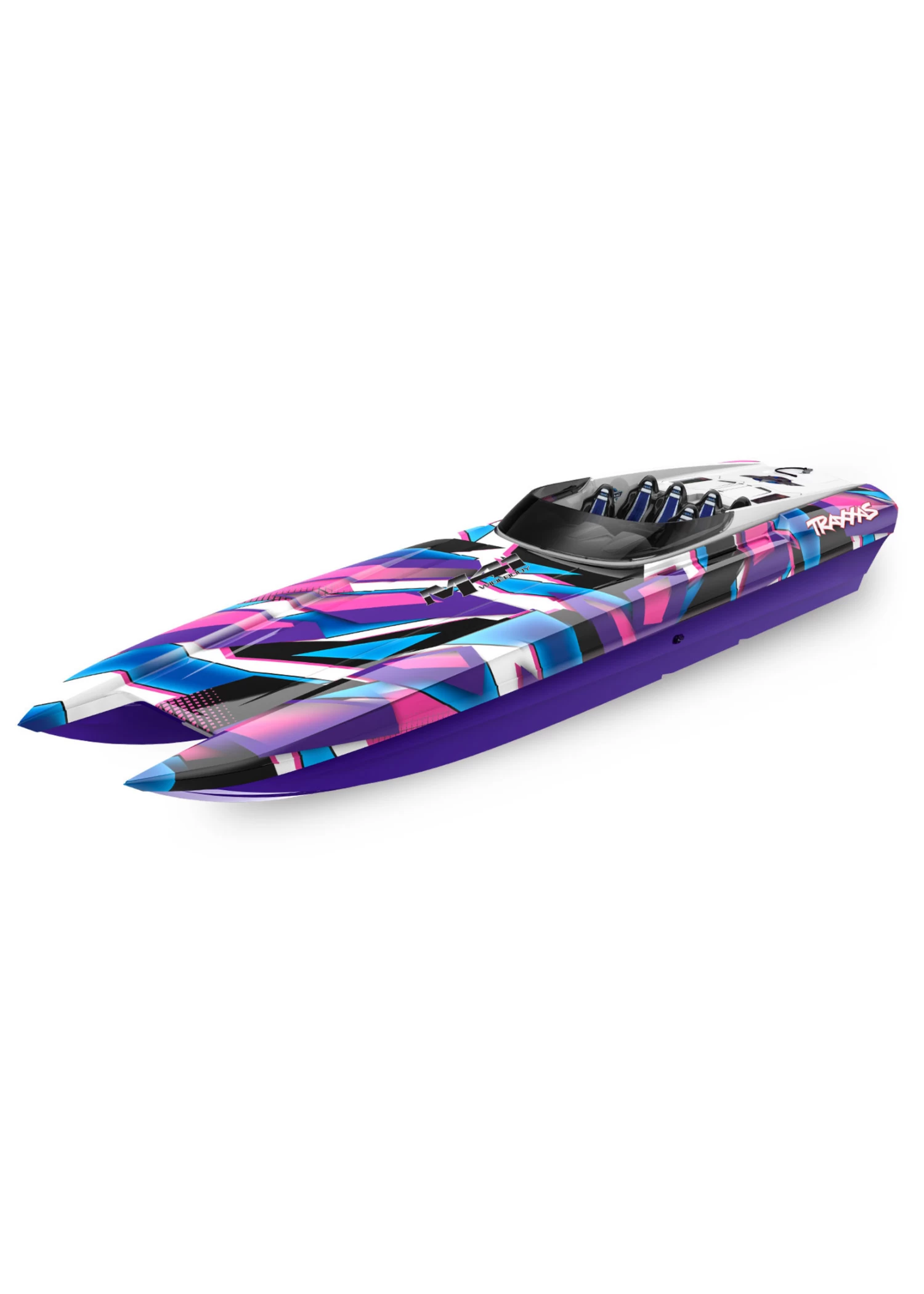 The DCB M41 Widebody catamaran, designed by DCB (Dave’s Custom Boats) founder Dave Hemmingson, is one of the largest models offered in the DCB M-Series. With its precision sculpted design and a pair of Mercury Racing 1350 engines, it speeds across the water at 175mph! Traxxas faithfully captured the incredible looks and performance of the DCB M41 in a detailed scale replica that is versatile, fun, and fast. The catamaran hull delivers the speed, stability and confidence for which the full-size M41 is famous, allowing you to have fun wherever your marine adventures take you. The M41 replica is equally at home blasting across the waves at the lake on a fun run or exploiting its 50+mph speed on a favorite stretch of smooth water. The razor sharp handling lets you carve turns with authority and precision and yet, offers easy control while cruising by the shore.