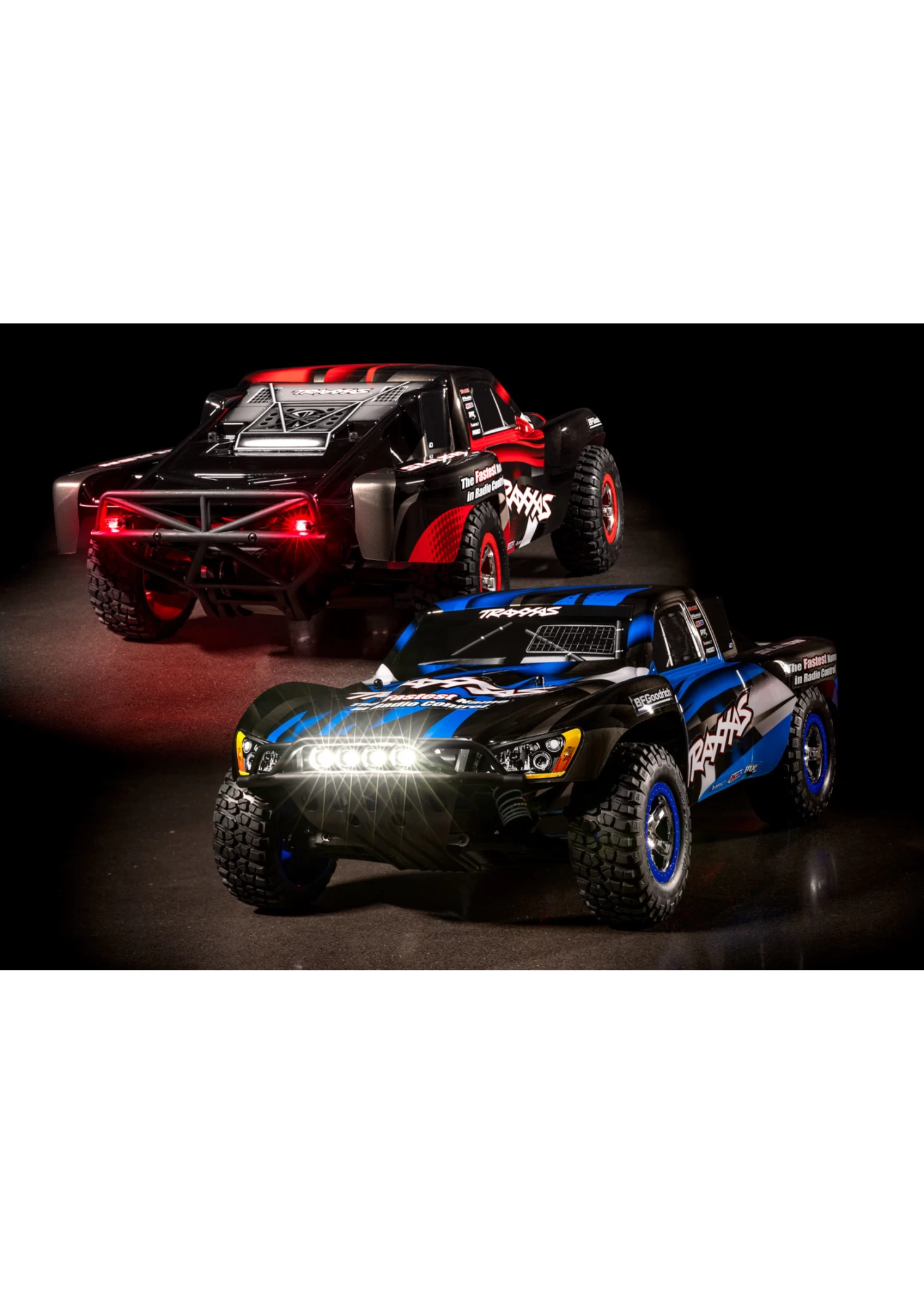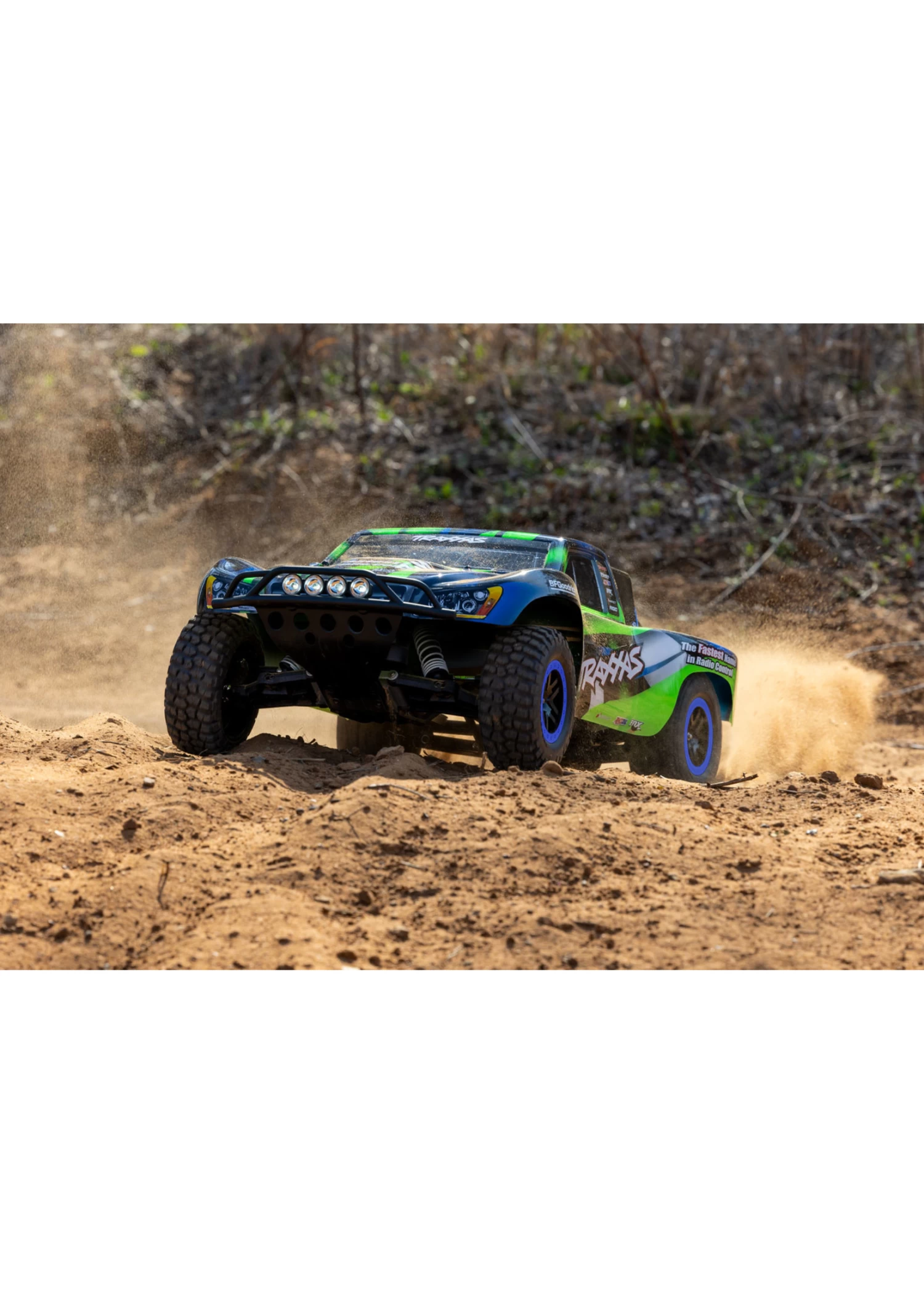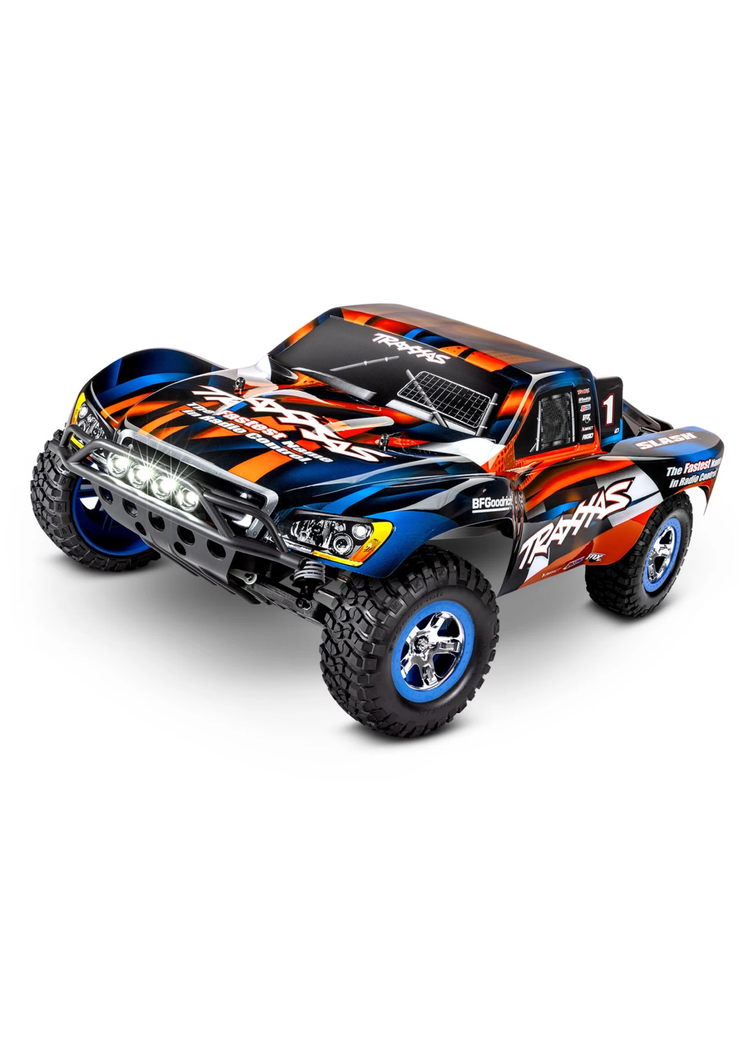 The award-winning Traxxas Slash short-course race truck puts you in the driver’s seat for intense fender-to-fender, high-flying off-road action. Full-scale short-course race trucks embody the spirit of Traxxas RC with their extreme 900+ horsepower racing engines full-throttle, dirt-roosting power slides, giant suspension travel, and big-air jumps. The Traxxas Slash brings all the action home so you can experience the high-speed head-to-head competition at the track or in your own backyard. The rear-wheel drive Slash is purpose built to fly over jumps and rip full-throttle through the turns. Slash hangs it out for an all new way to challenge your driving skills. The 4-wheel independent suspension has been carefully tuned to replicate the real world driving and handling experience as closely as possible. The scale appearing tires provide just the right amount of bite and thick, blinding clouds of dirt roost.