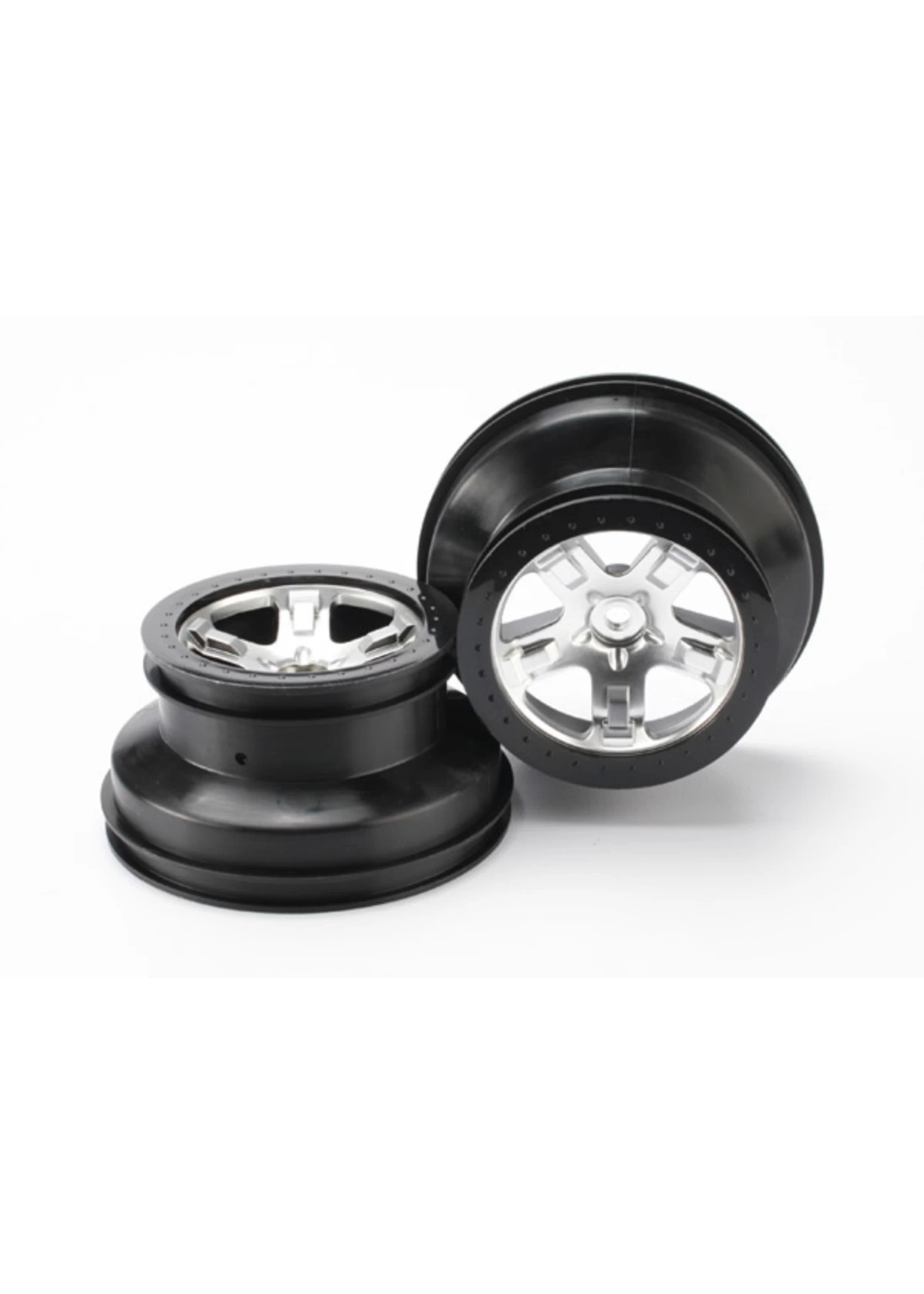 TRA5872X Traxxas Wheels, SCT Satin Chrome, Black Beadlock Style SCT, Dual Profile (2.2” Outer, 3.0” Inner) (4WD Front/rear, 2WD Rear Only) (2)