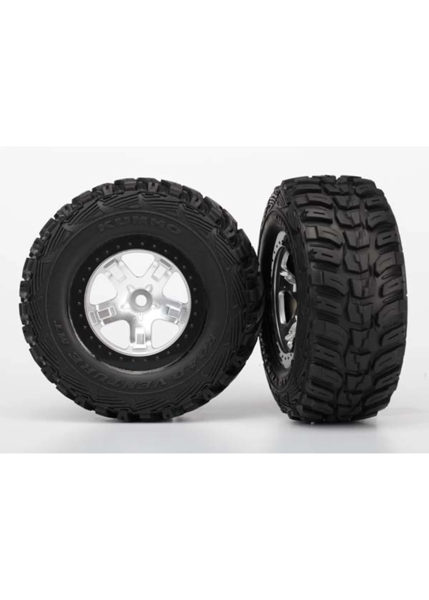 The race-winning Kumho Road Venture MT tire is the latest competition-proven tread pattern to be captured in 1/10 scale by Traxxas and are now standard equipment on the latest Scott Douglas/Mike Oberg Edition Slash and Slash 4X4, and are also available in unmounted pairs with foam inserts, as well as mounted pairs on SCT Wheels. The distinctive design is realistically molded in the long lasting, versatile standard compound, with unique, aggressive sidewall detail and raised lettering that have been perfectly rendered for realistic looks and authentic performance.