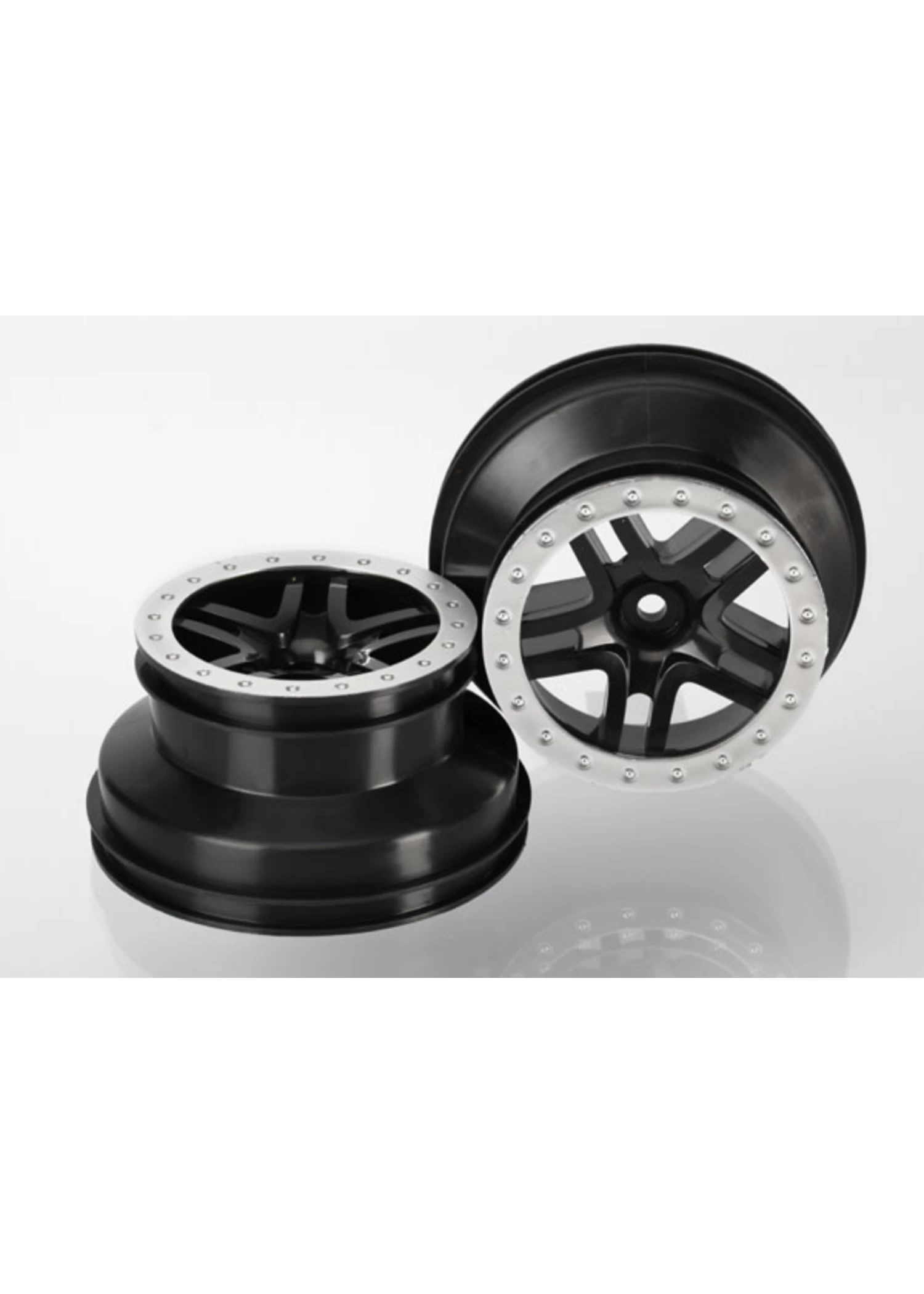 Wheels, SCT Split-Spoke, black, satin chrome beadlock style, dual profile (2.2′ outer, 3.0′ inner) (4WD f/r, 2WD rear) (2)