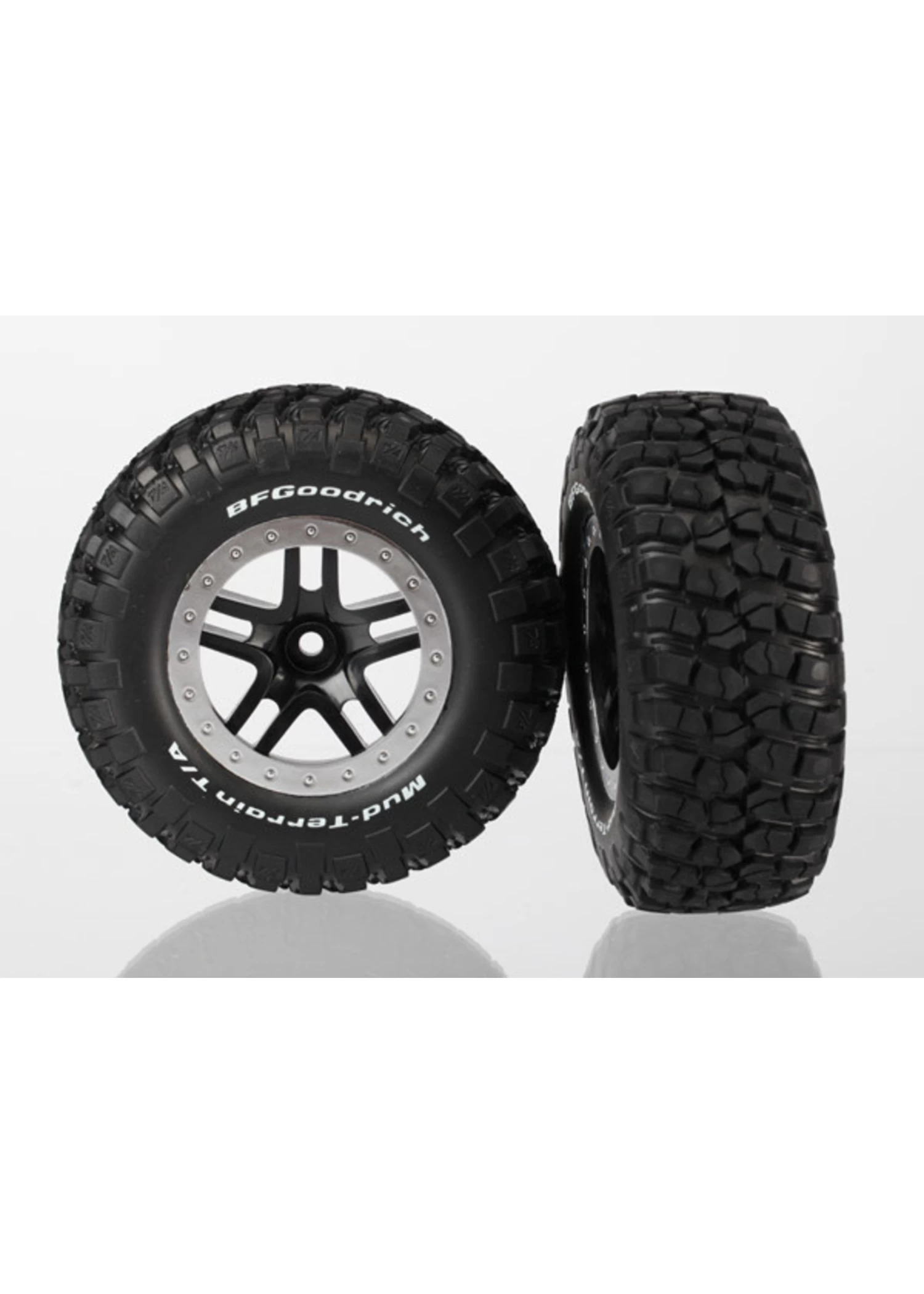 Tires & wheels, assembled, glued (SCT Split-Spoke, black, satin chrome beadlock wheels, BFGoodrich® Mud-Terrain™ T/A® KM2 tires, foam inserts) (2) (2WD Front)