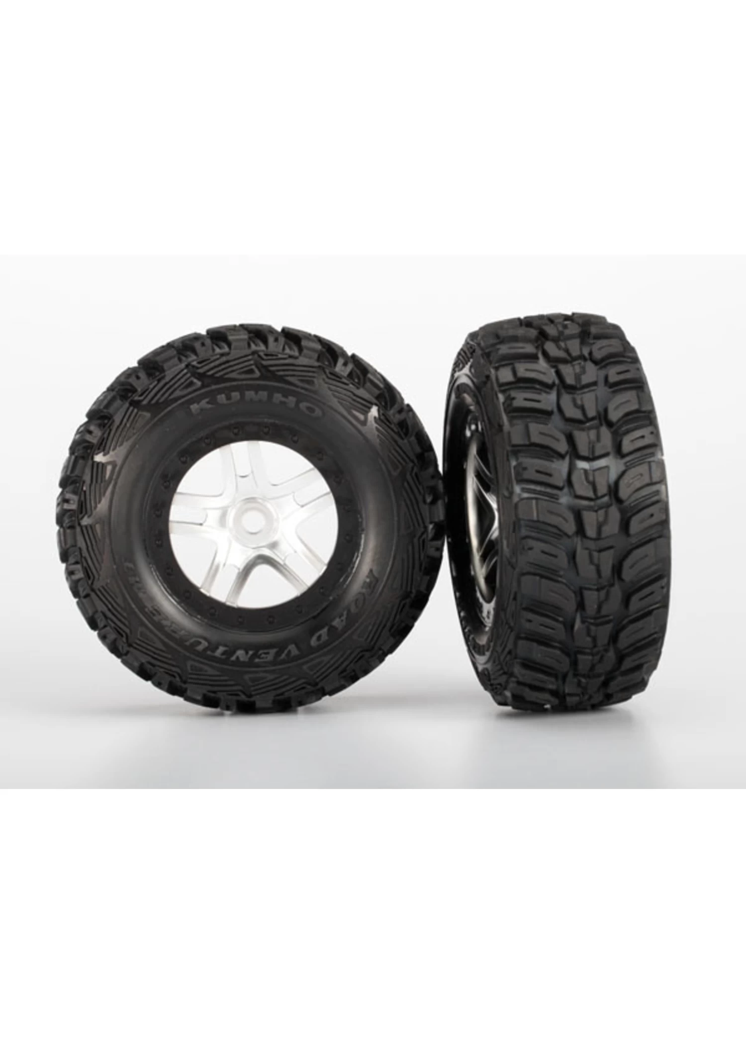 TRA5976R Traxxas Tires & Wheels, Assembled, Glued (S1 Ultra-soft Off-road Racing Compound) (SCT Split-Spoke Satin Chrome, Black Beadlock Style Wheels, Dual Profile (2.2′ Outer, 3.0′ Inner), Kumho Tires, Foam Inserts) (2) (front/rear)