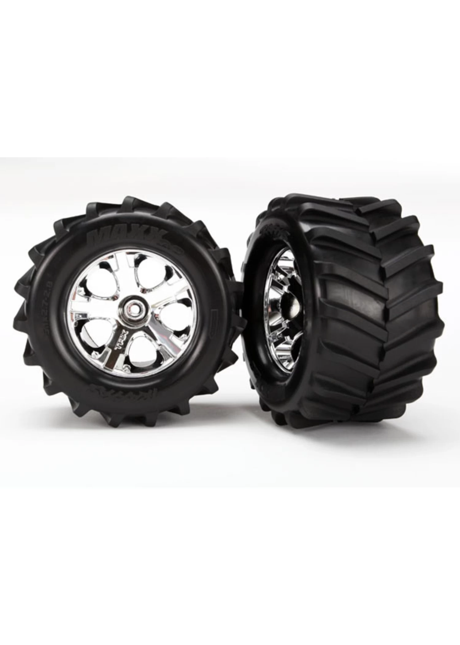 These tires feature a 12mm hex, chevron style tread and are a replacement for the Stampede 4×4, however, they will also work for the Traxxas Hoss 4×4, Rustler 4×4 and the Bigfoot No. 1. Package includes two pre-mounted tires.