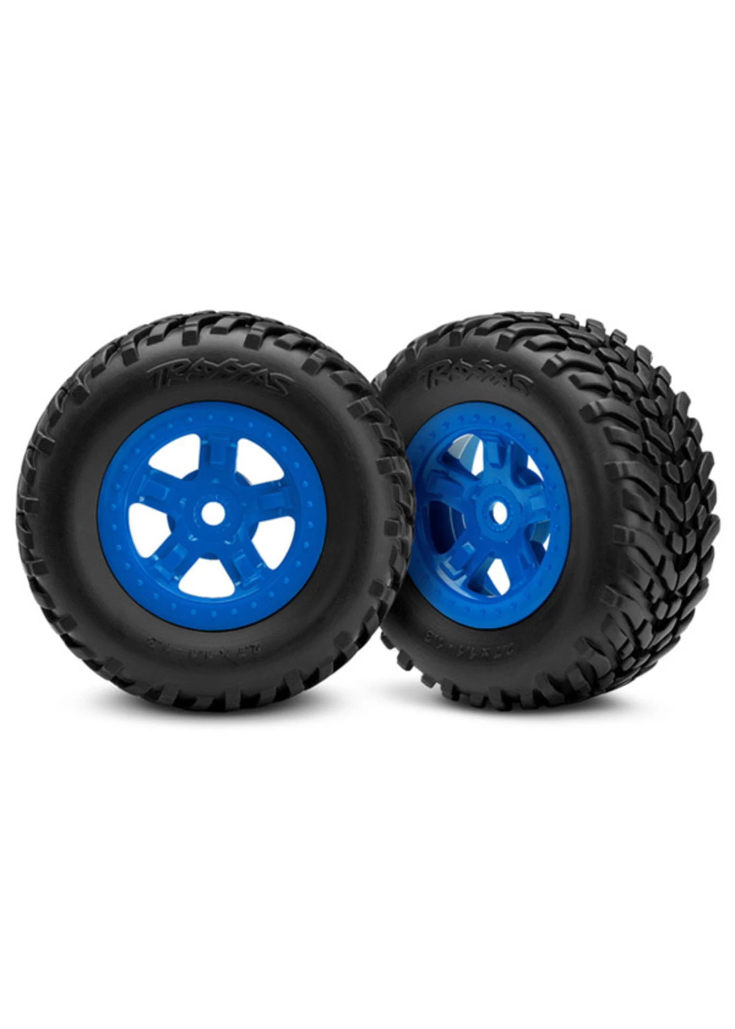 TRA7674 Traxxas Tires And Wheels, Assembled, Glued (SCT Blue Wheels, SCT Off-road Racing Tires) (1 Each, Right & Left)