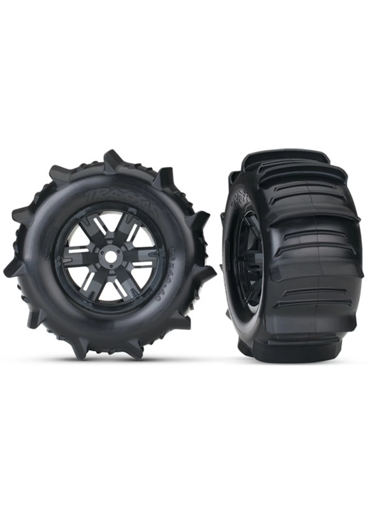 TRA7773 Traxxas Tires & Wheels, Assembled, Glued (X-Maxx Black Wheels, Paddle Tires, Foam Inserts) (left & Right) (2)