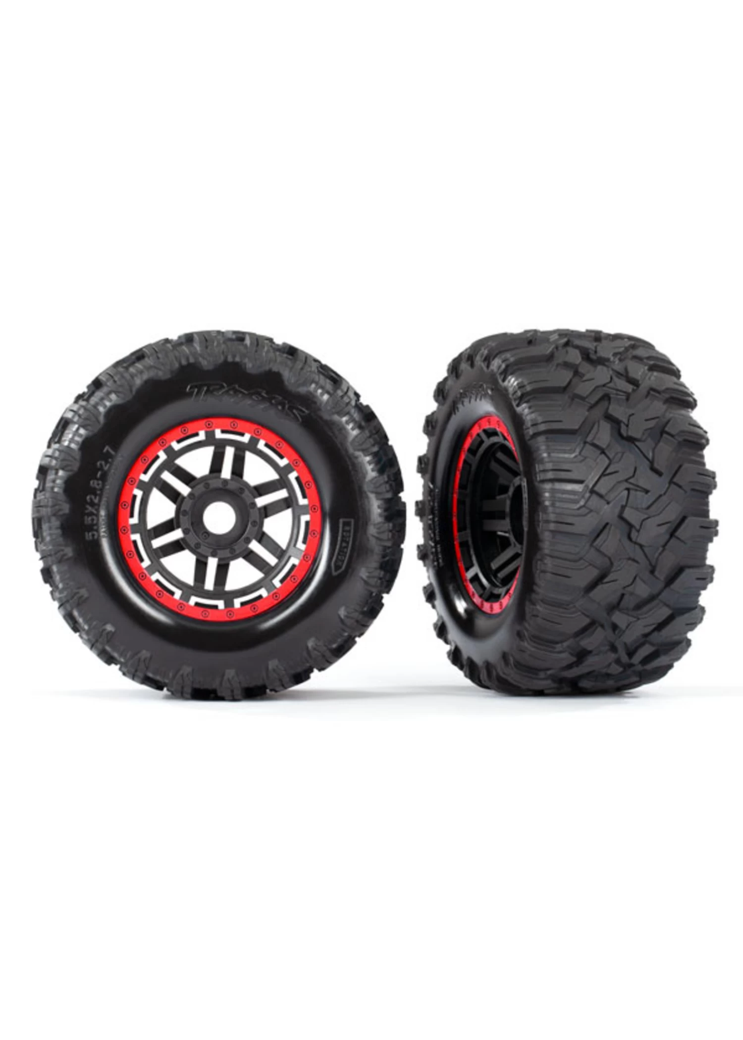 TRA8972R Traxxas Tires & Wheels, Assembled, Glued (black, Red Beadlock Style Wheels, Maxx MT Tires, Foam Inserts) (2) (17mm Splined) (TSM Rated)