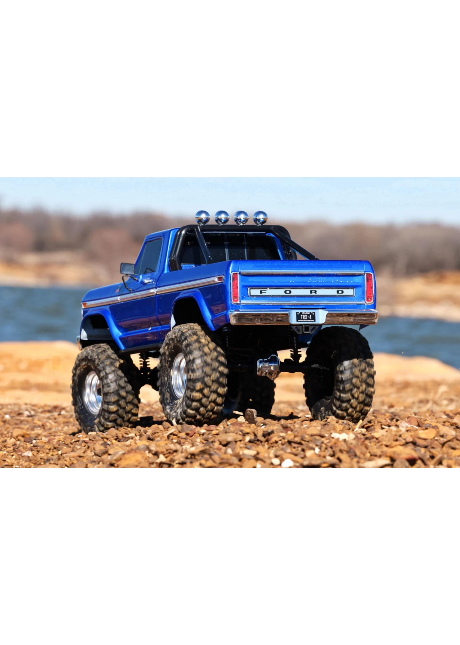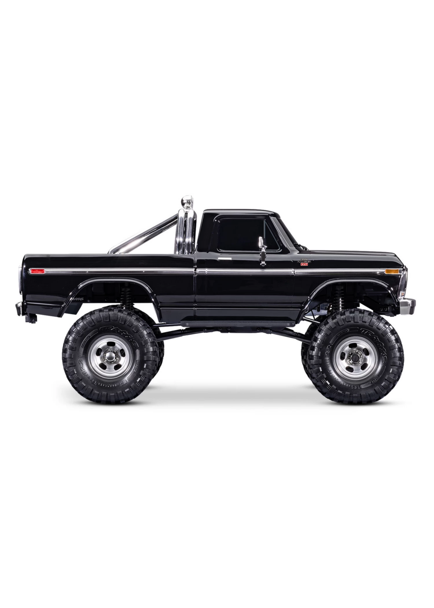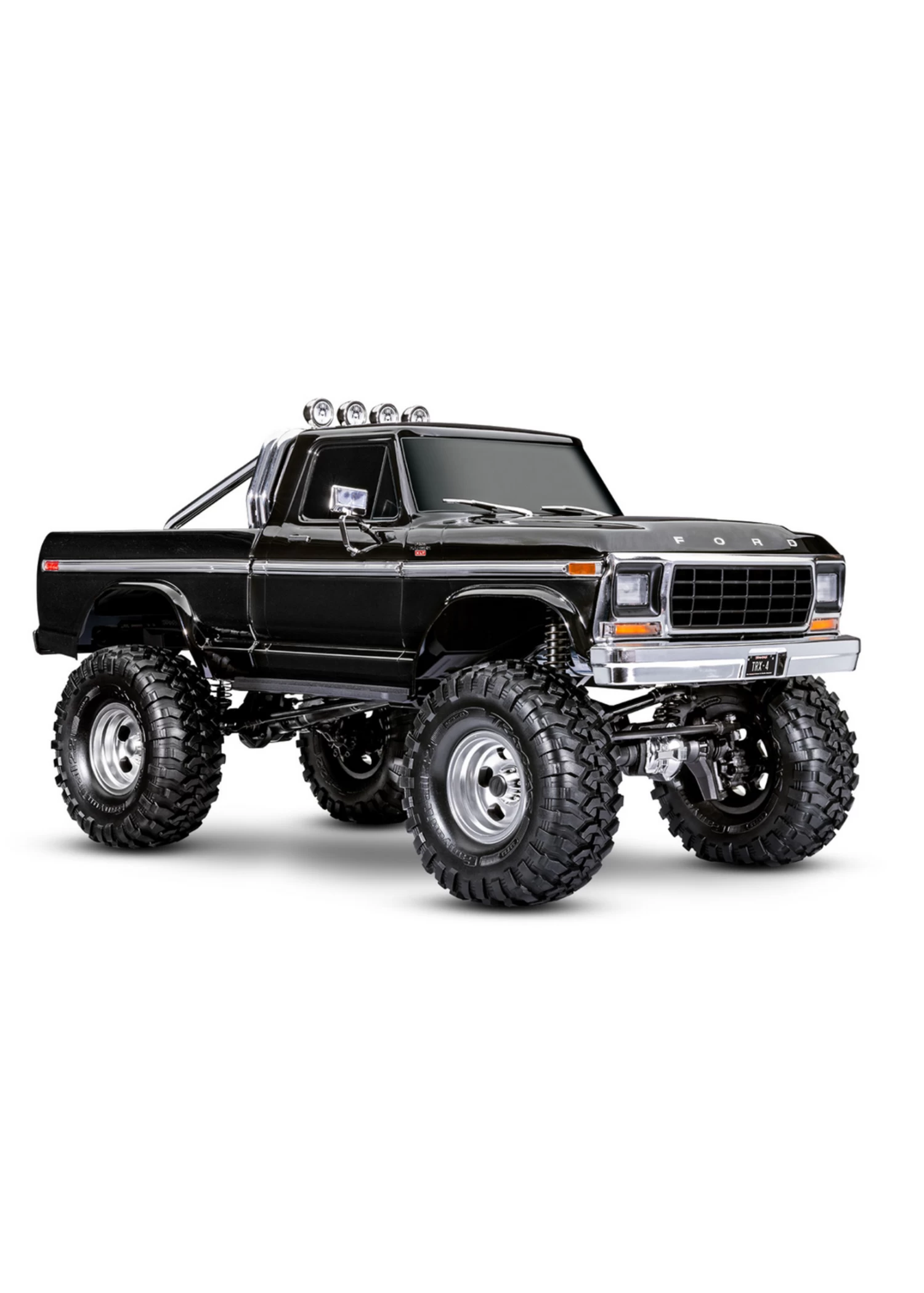 Sporting top-of-the-line Ranger XLT trim, the Ford F-150 High Trail is equipped with a factory-installed Long Arm Lift Kit and stands over an inch taller than our standard height TRX-4. The exceptional all-terrain capability, smooth running drivetrain, and Traxxas Tough® durability drivers expect from TRX-4 are all there. Black roll bar, chrome light housings, longer wheelbase, and slotted aluminum-finish mags complete the authentic, period correct look.