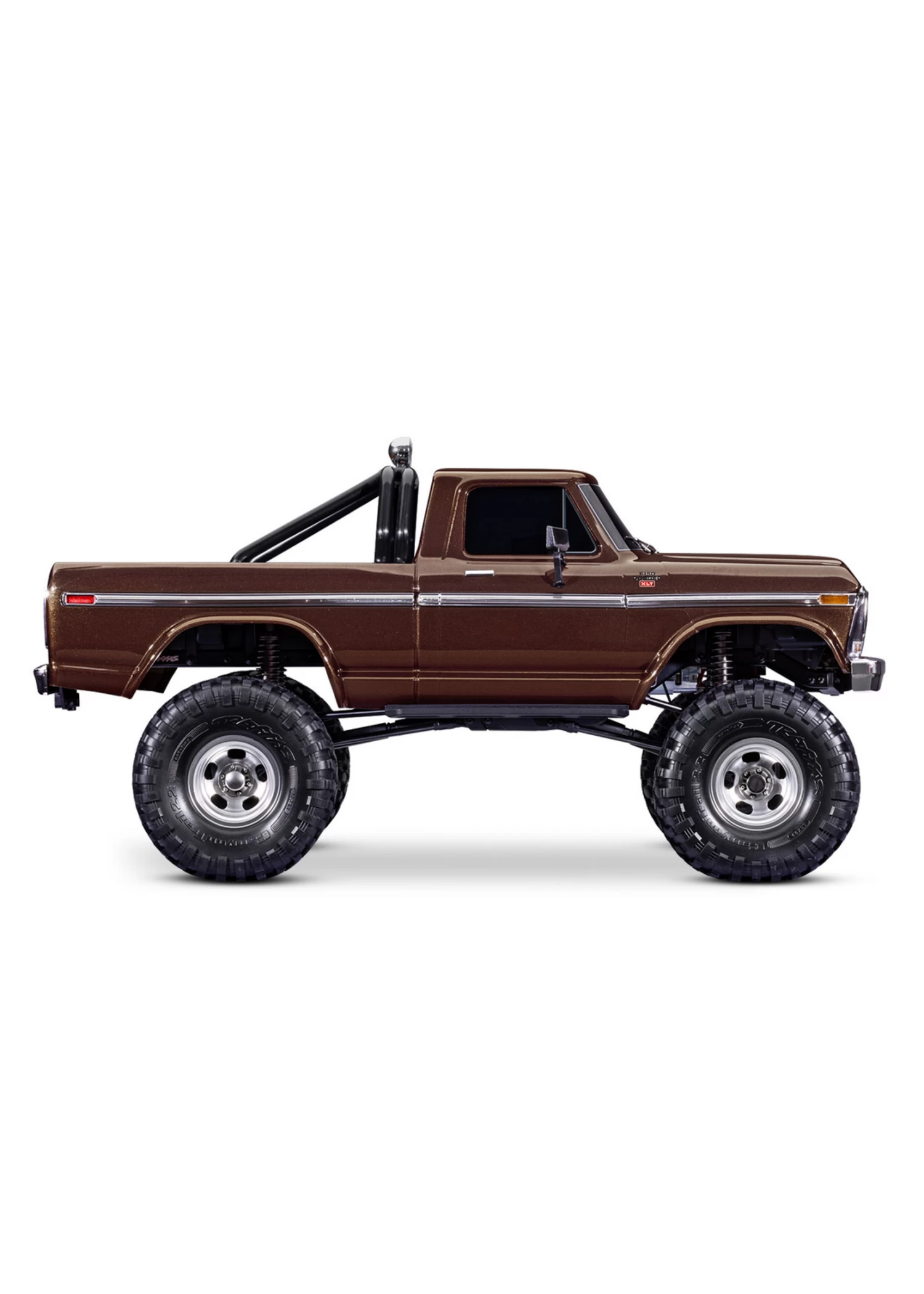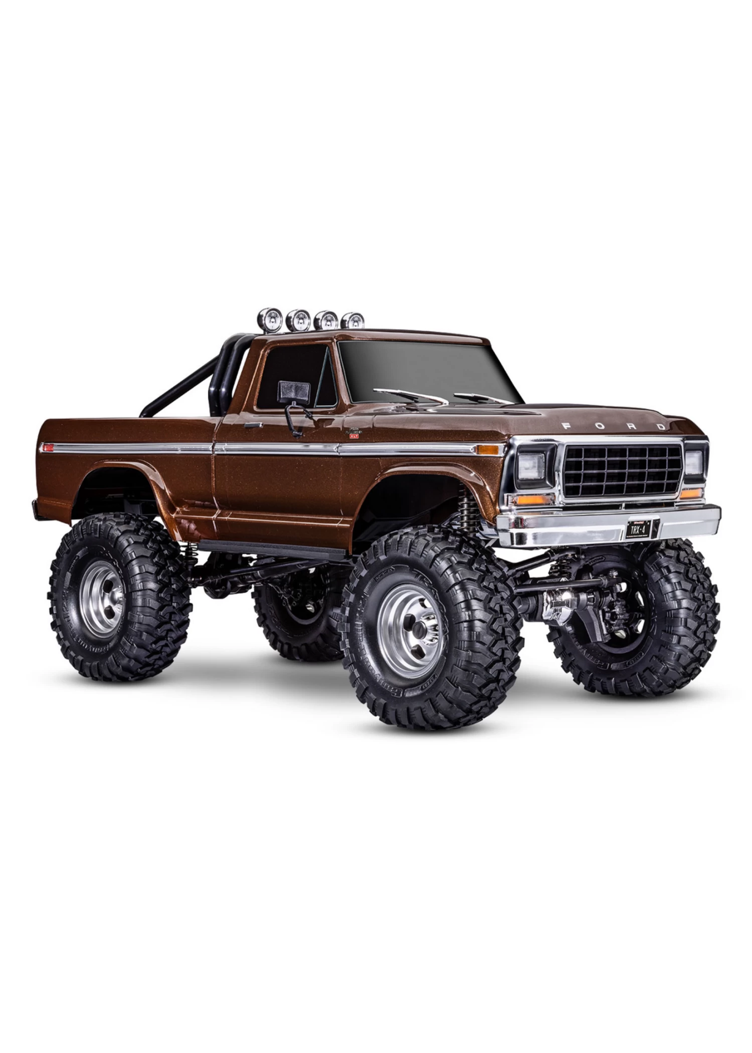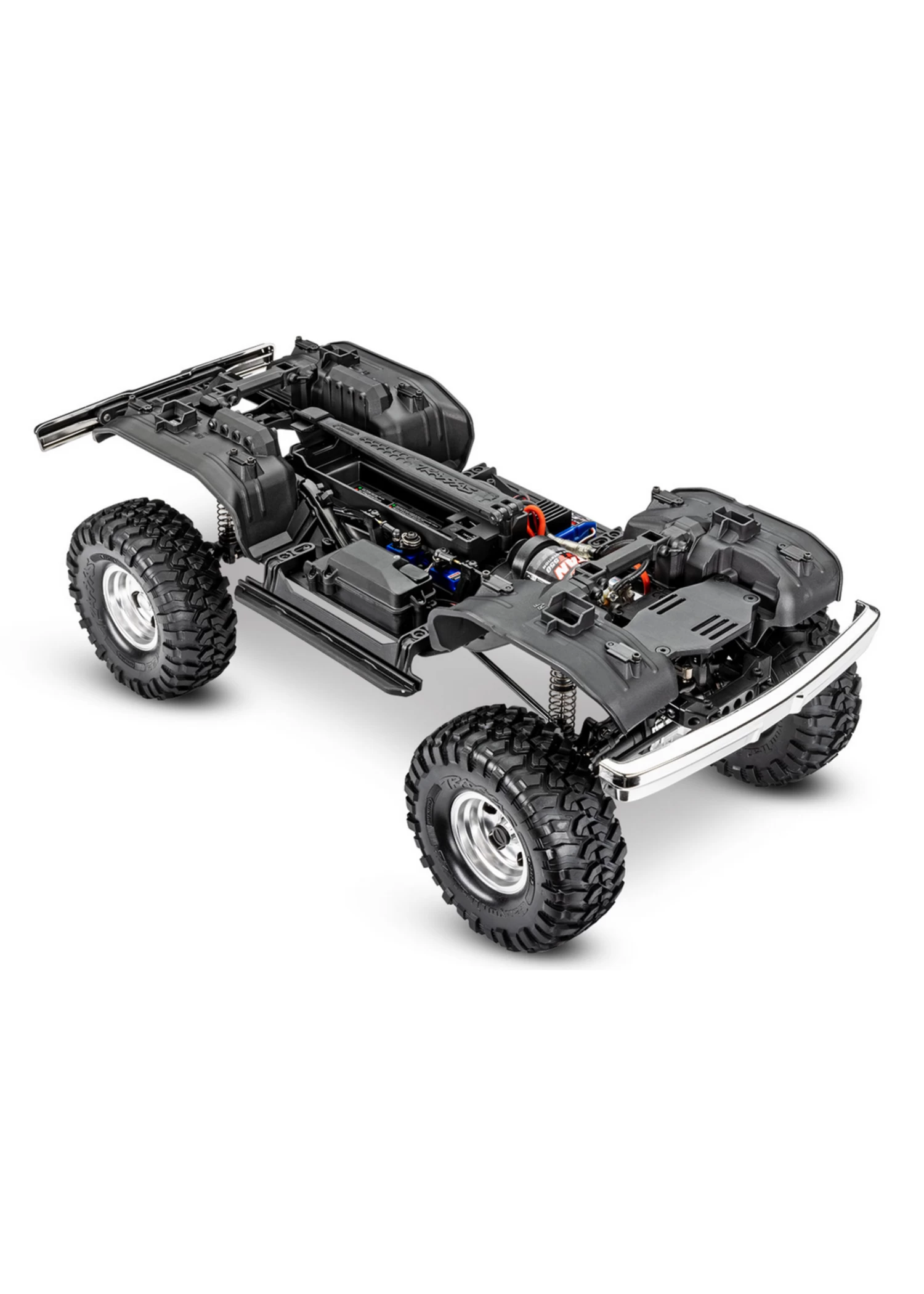 Sporting top-of-the-line Ranger XLT trim, the Ford F-150 High Trail is equipped with a factory-installed Long Arm Lift Kit and stands over an inch taller than our standard height TRX-4. The exceptional all-terrain capability, smooth running drivetrain, and Traxxas Tough® durability drivers expect from TRX-4 are all there. Black roll bar, chrome light housings, longer wheelbase, and slotted aluminum-finish mags complete the authentic, period correct look.