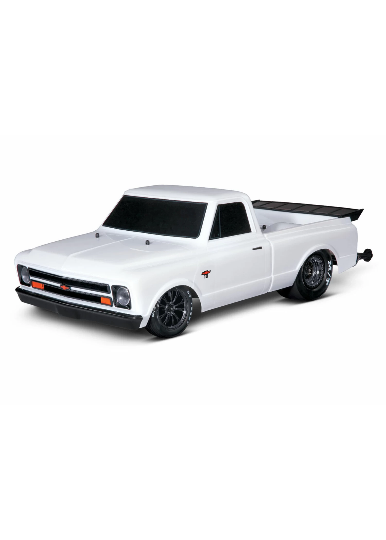 The exclusive TSM Drag Mode functionality and Trans Brake equipped TQi transmitter provides a unique driving experience that is not available in any other model—and the Drag Slash does it topped off with a super scale Chevy C10 body, creating a no prep rig built the Traxxas way.